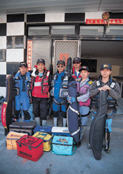 澎湖縣磯釣協會在旅館前整裝完畢,正預備在「磯釣天堂」馬祖大展身手。