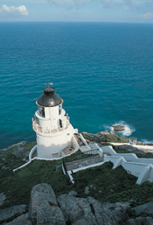 東引燈塔則如佇立綠岸的白衣少女,讓湛藍海水襯得純潔優雅,望之令人舒暢,正好為馬祖之遊畫上句點。