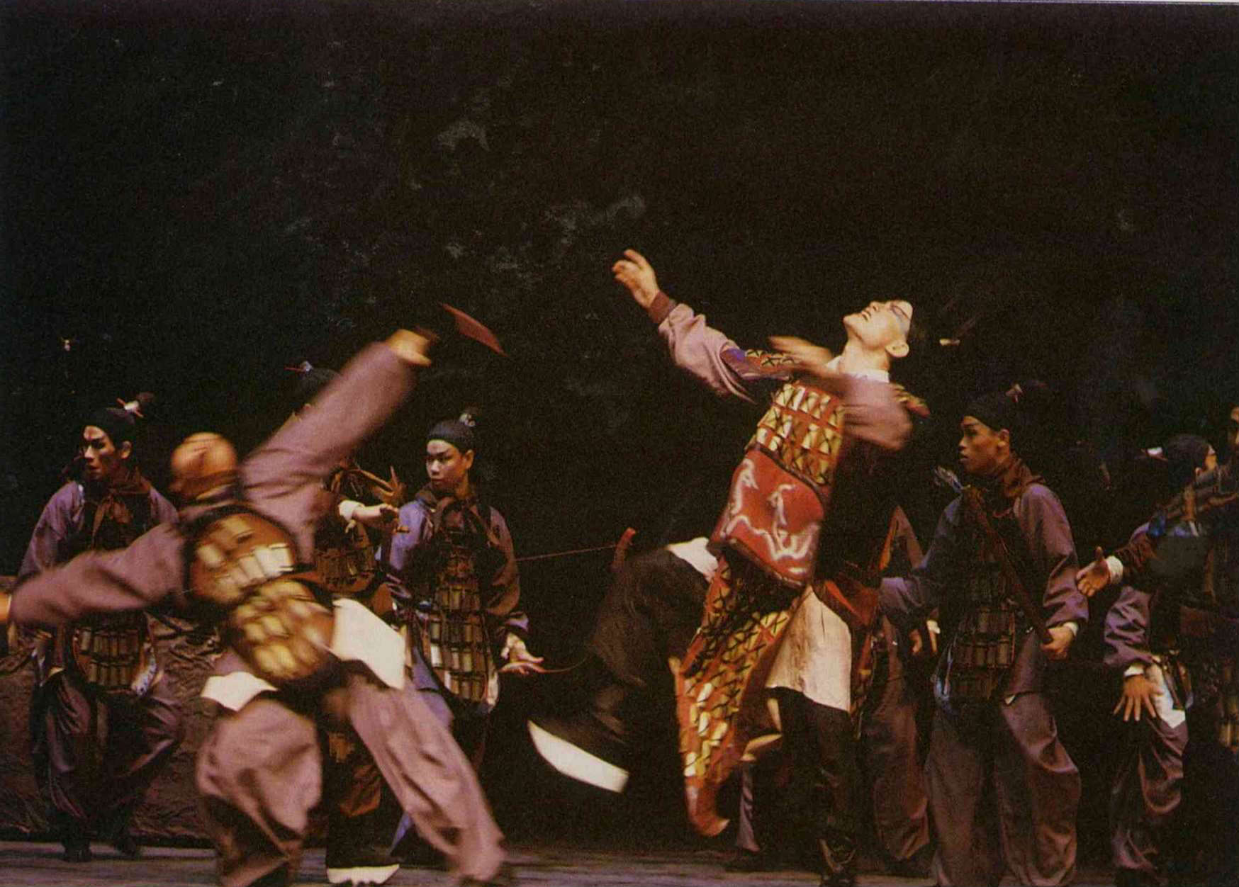 然而,在最後一幕亂軍叛離中,吳興國由一個由廿呎高台翻躍而下的「折腰」絕技,卻被一位外國劇評家贊道:「這一躍,躍過了傳統國劇的界限!」