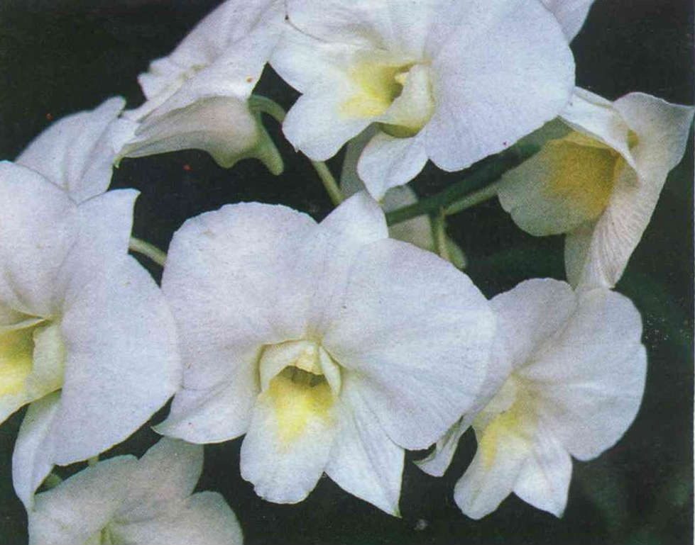 白花秋石斛是洋蘭中比較淡雅的一種。國蘭的花形秀麗,香味清幽,葉片修長優雅,其中線蘭的欣賞重點不在花朵,而在葉片上條紋的變化。(恆水)