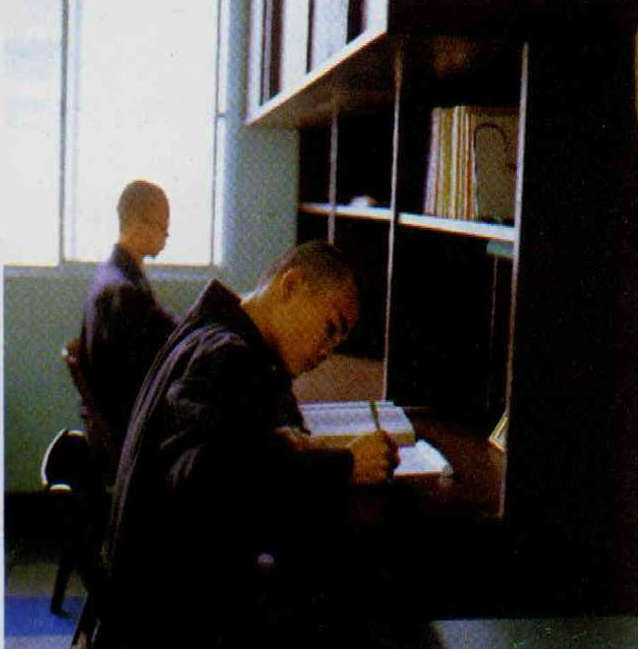 出家信徒研習佛理。