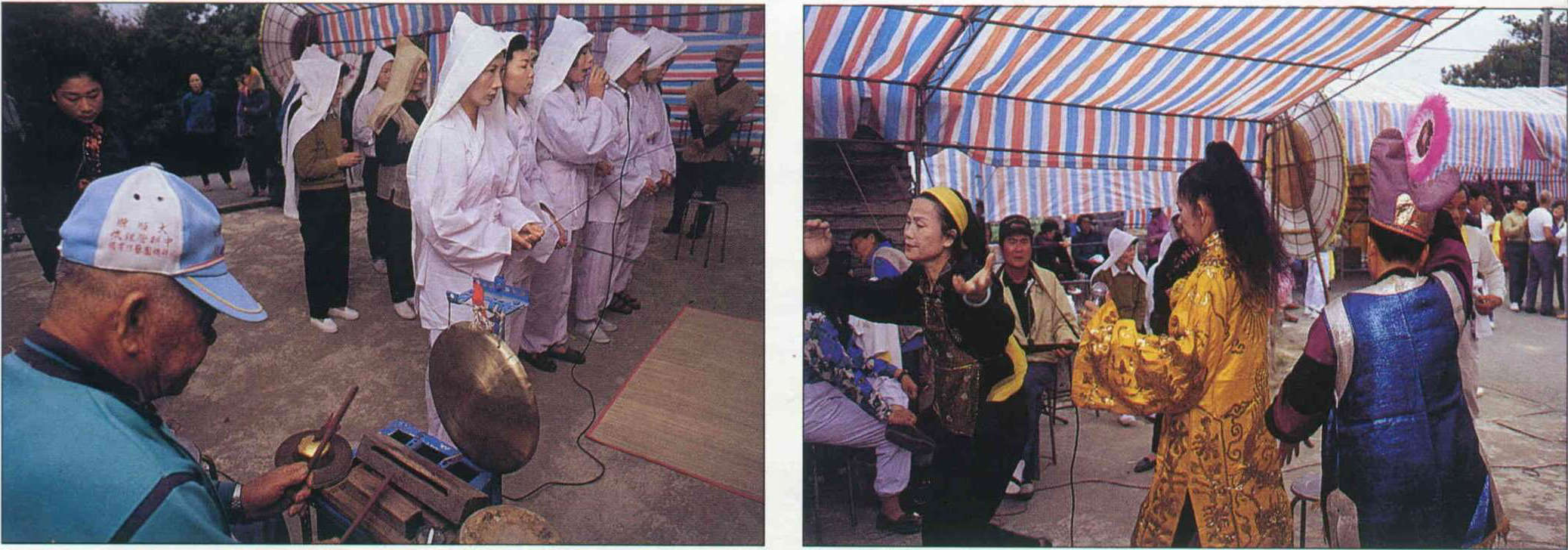 五子哭墓(左)、孫臏弔喪(右),是喪葬場合中常見的應景小戲陣頭,不具任何宗教功能。