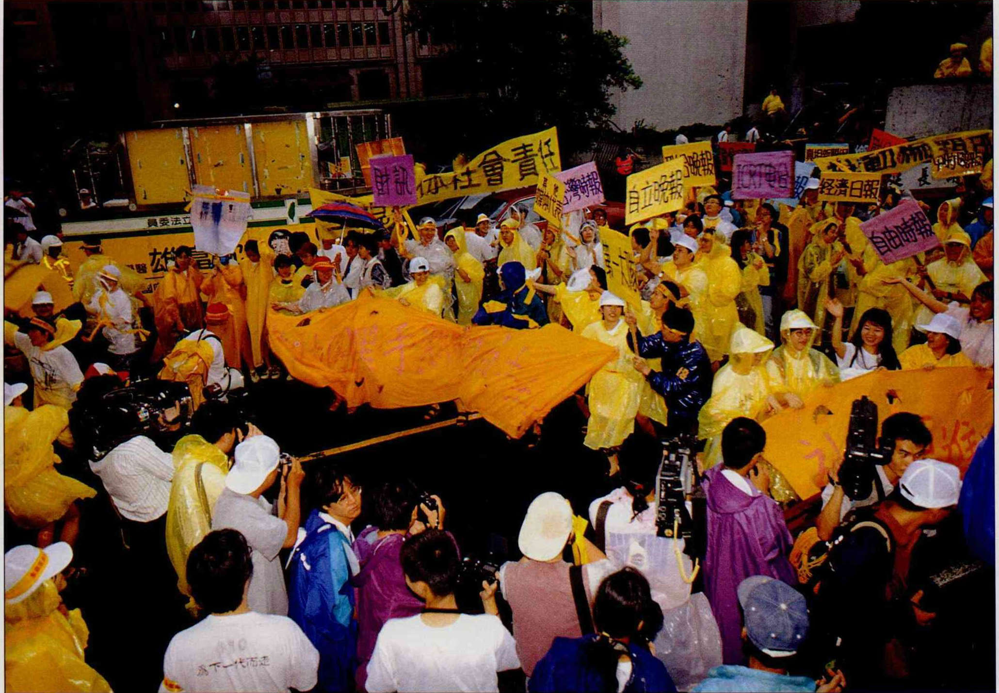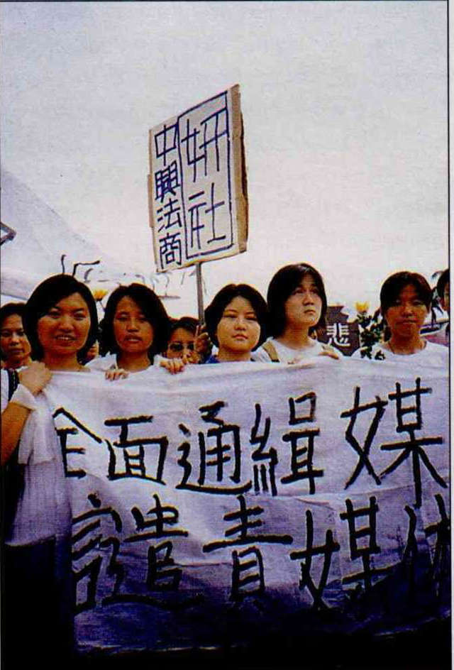 重大刑案一再發生,社會各界發動五○四大遊行,大專院校學生組成隊伍,譴責媒體處理白曉燕新聞不當。(鄭美里攝)(鄭美里攝)