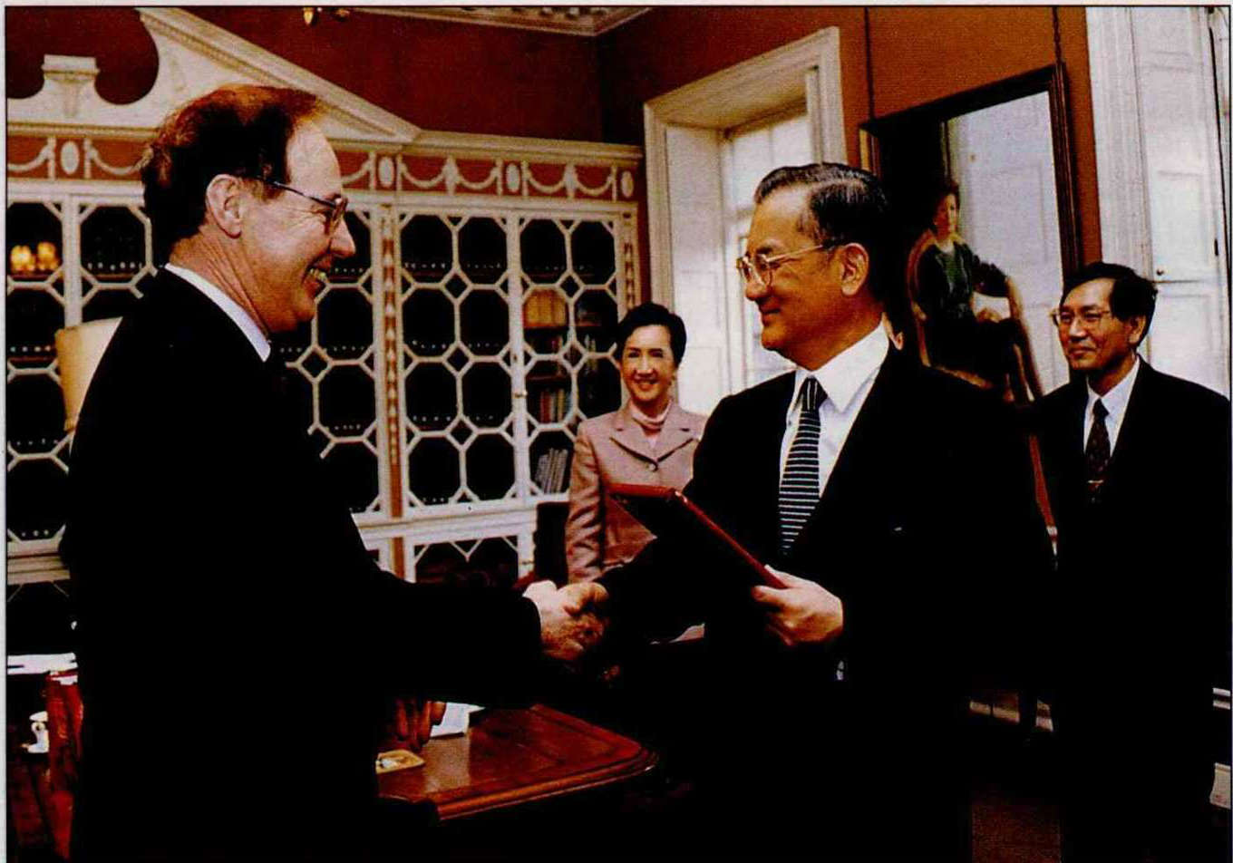 政府官員出訪,行程常須保密,和記者「善盡告知」的角色可能就有衝突。圖為副總統連戰今年初訪問愛爾蘭都柏林的三一大學。(李培徽攝)(李培徽攝)