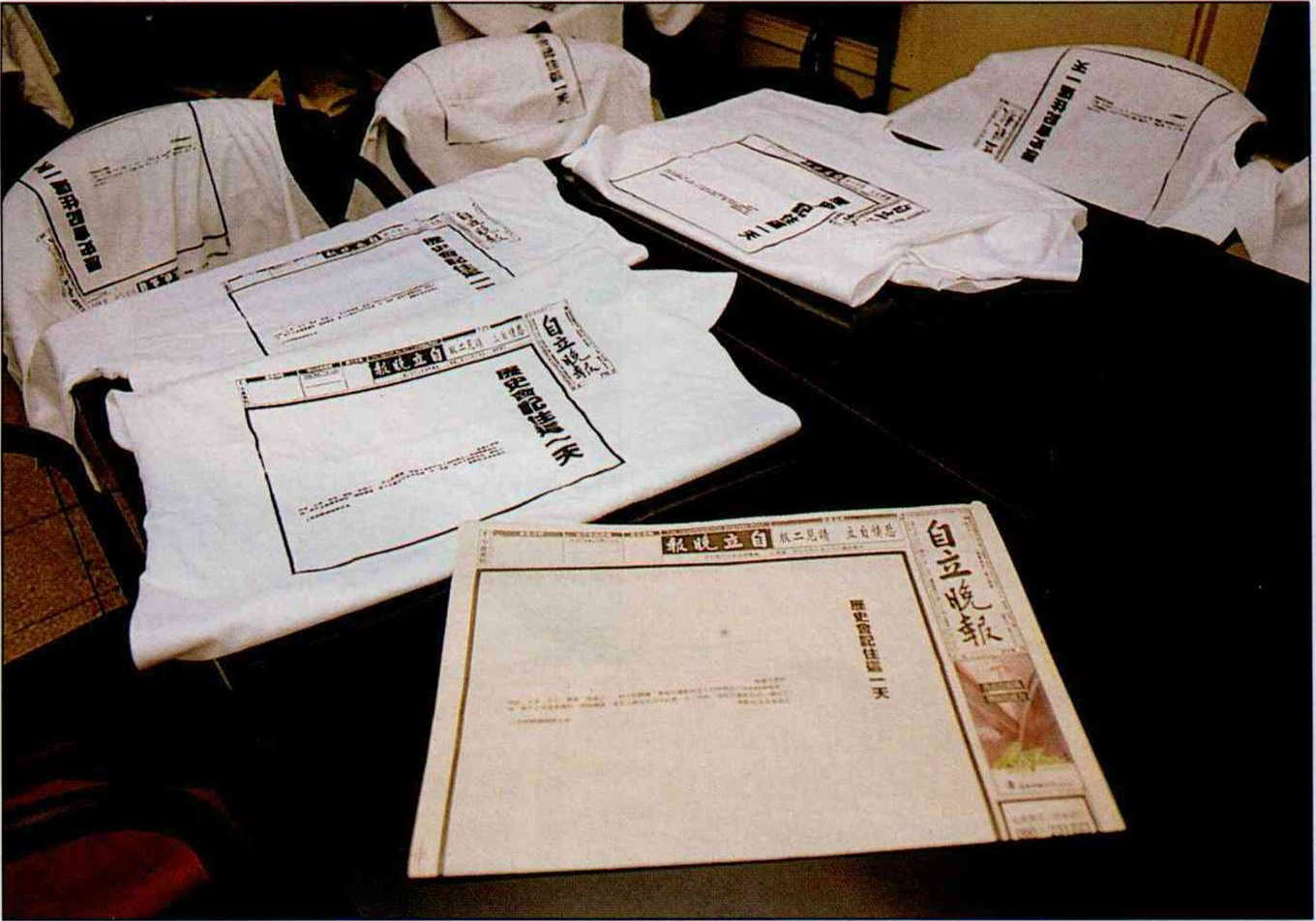 一九九四年自立報系產權轉移,員工希望新資方能尊重編輯部新聞專業,自立晚報以「歷史會記住這一天」頭版開天窗為告白。(張良綱攝)(張良綱攝)