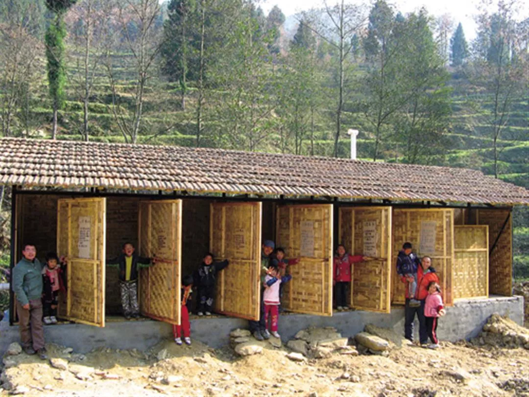 他用舊木頭、柳樹苗做成草屋頂,麥秸加上黏土圍成牆,葦席釘成木門,最後這座4間的公共廁所,只花了2,000元人民幣。