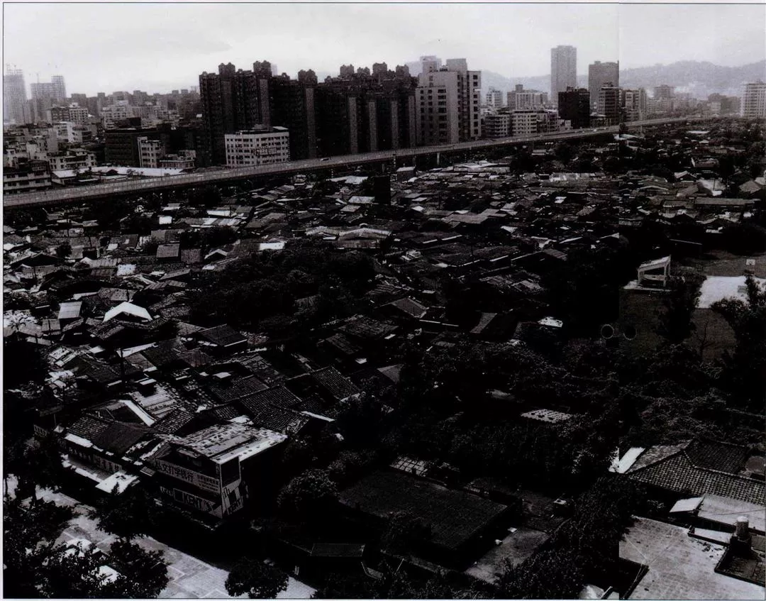 七號公園預定地,曾經是台北市內最大的違章建築區,兩千多戶的低矮平房,與建國高架橋另一邊的高樓叢林一對照,彷彿兩個世界。
