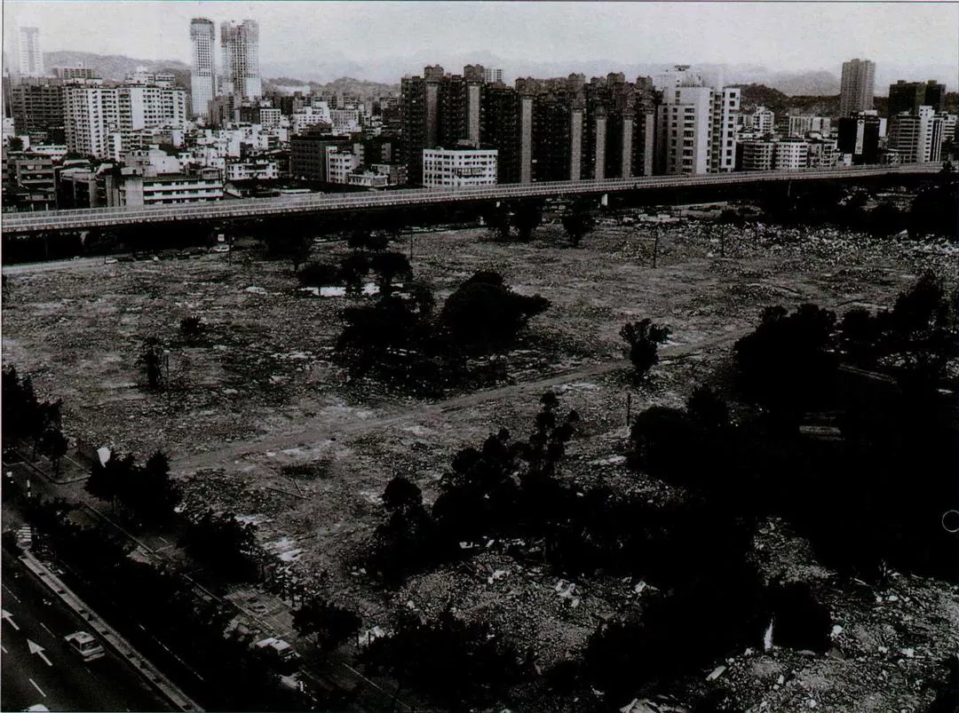 作者:詹朝陽 1966年生於台灣省雲林縣現任「黑白新聞週刊」攝影記者 七號公園預定地,曾經是台北市內最大的違章建築區,兩千多戶的低矮平房,與建國高架橋另一邊的高樓叢林一對照,彷彿兩個世界。