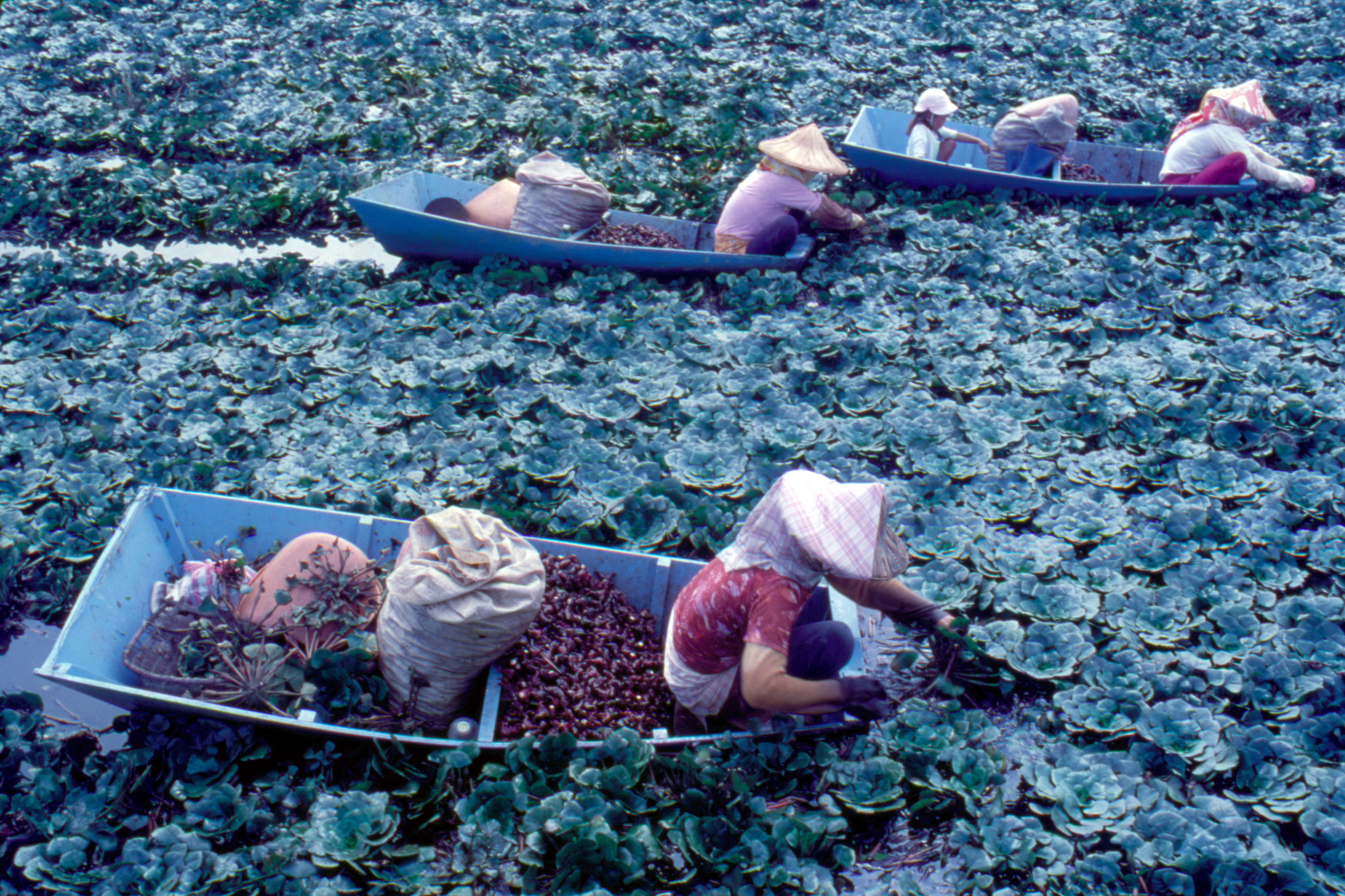 本省嘉義以南一帶,常可看到四處散佈的菱田。每年八月左右是採菱旺季。