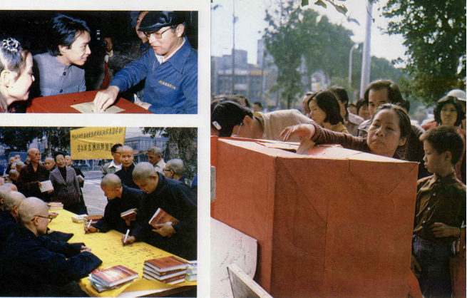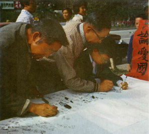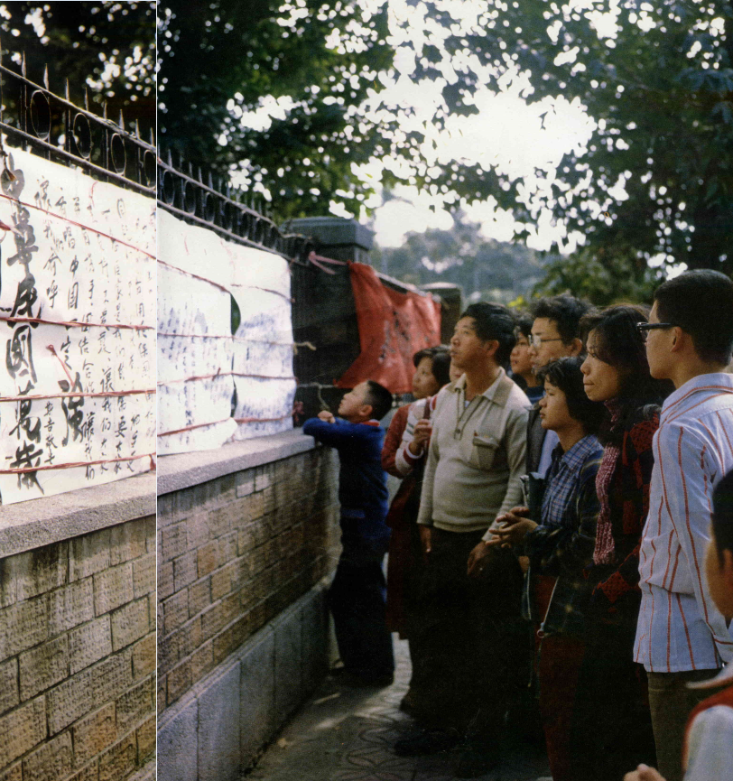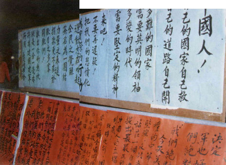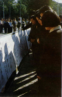 成千上萬的台北市民,也不約而同的湧向國立台灣大學門口因競選活動而設立的「愛國牆」與「民主牆」,大家在一起共同抒發愛國的心聲。