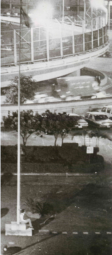 升旗的青年一直默默地坐著護旗,表示他的義憤與抗議。兩名美國大使館中的海軍陸戰隊士兵,請他離館。