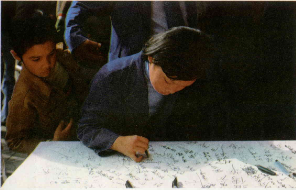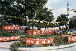於是,在歡呼聲中,警察接過一面面國旗,在拒馬上結結實實的紮住。剎時間,旗海飄揚,在場的人莫不感動得淚水潸潸。