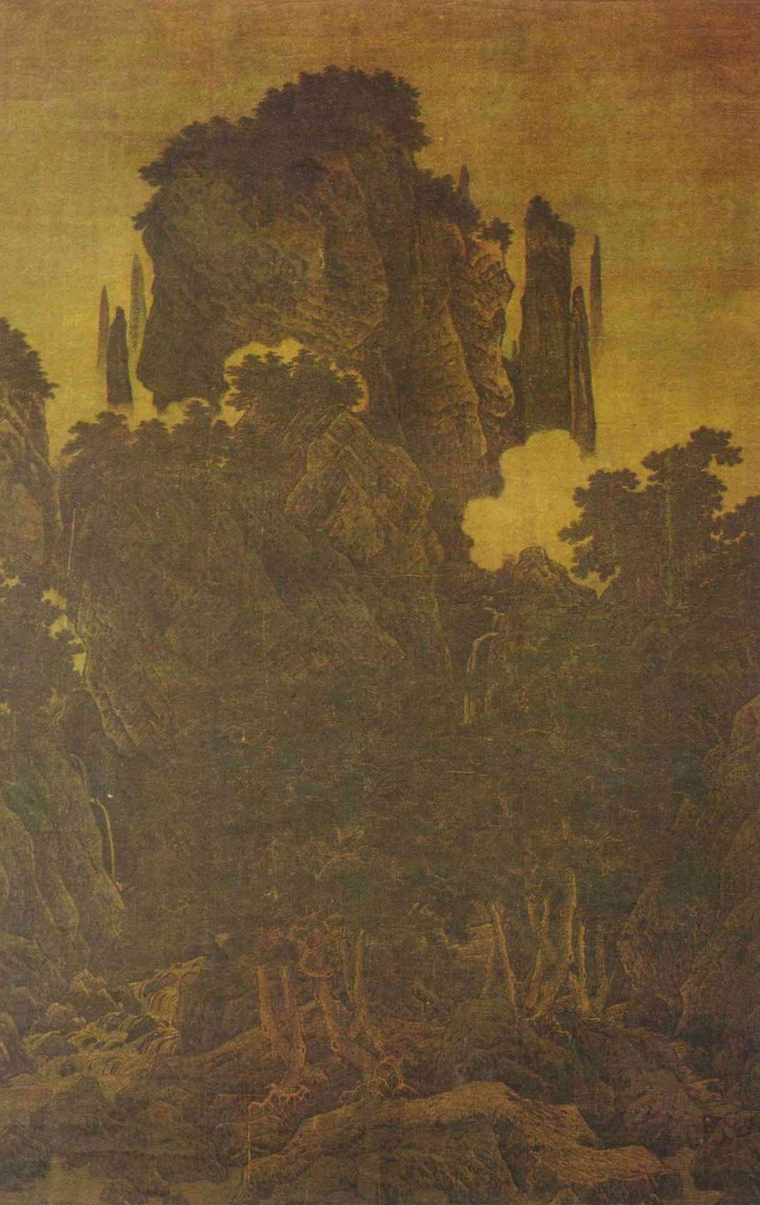 北宋以前的山水畫崇尚細緻、秀潤的筆調,一般構圖的方式,是在一張畫幅上,首先在上下各留出部份空白,叫做「天地」,然後才佈景,用意在使畫出來的境界有深遠的感覺。