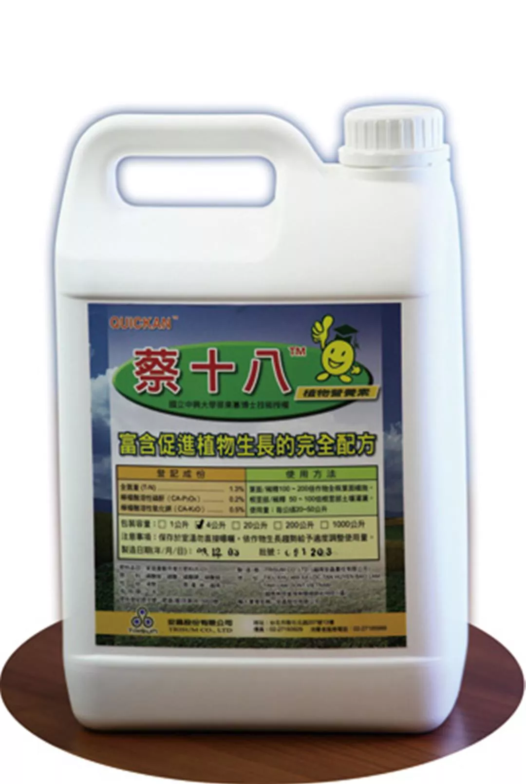 為了方便農民購買,蔡東纂將「蔡18菌」的技術轉給安晶公司發酵生產,成品可分成4公升裝和20公升裝,20公升售價約2,000元,加水稀釋後可用於一公頃的耕地,等於一分地(300坪)200元。