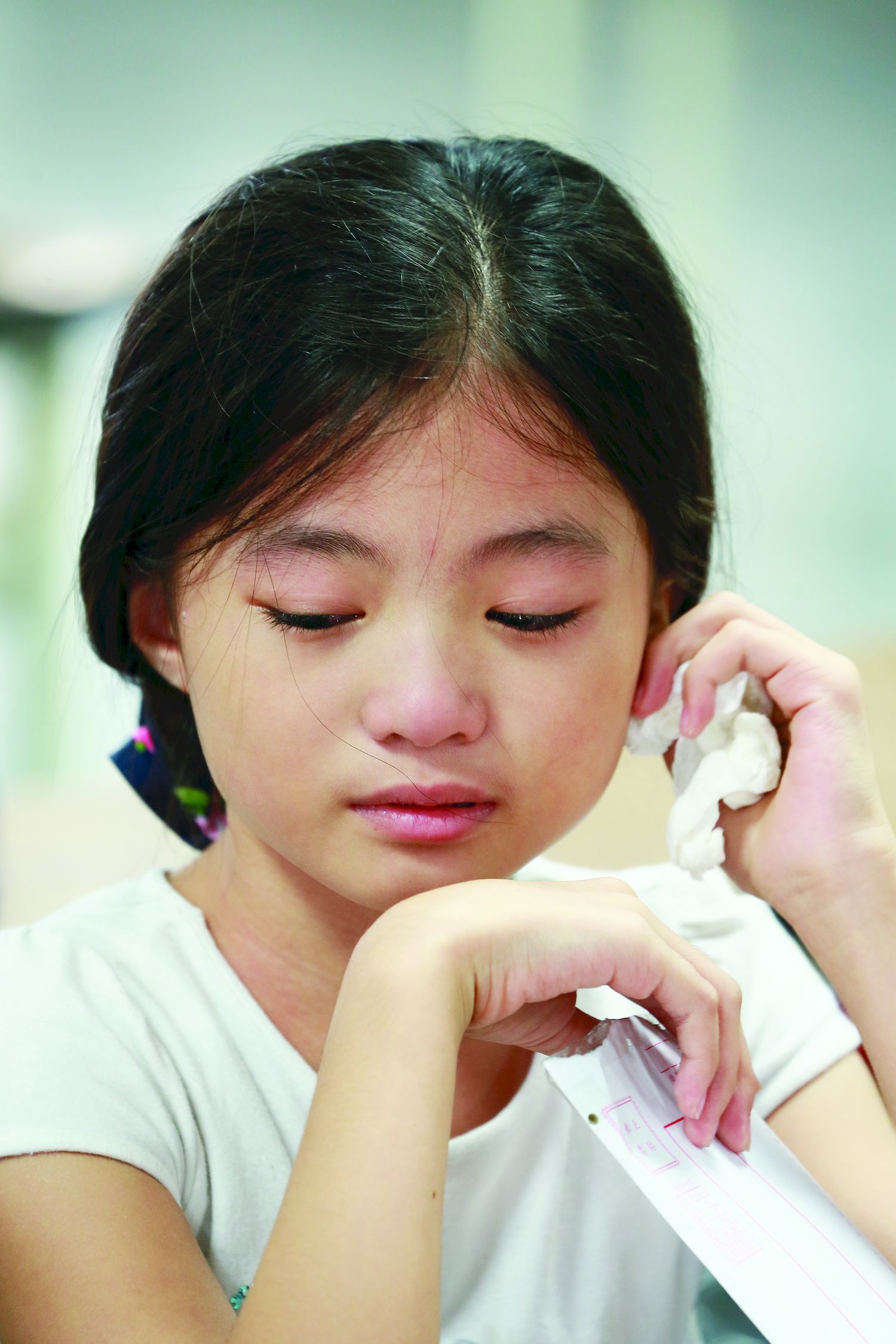 小六要升國一的陳宛萱一邊擦眼淚一邊害羞地說:「真的感動到我了!」