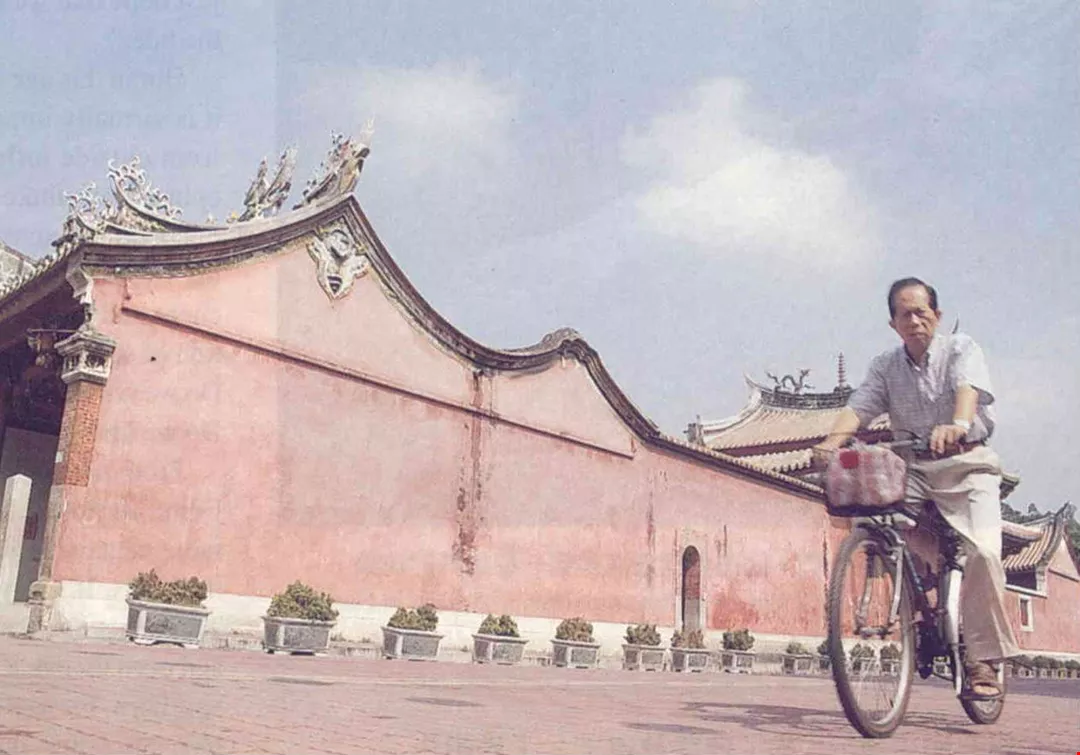 阿伯騎著腳踏車,緩緩地錯開清晨中的祭祀武廟。在台南,時間總散透著一股屬於「安靜」地甜味。(邱瑞金)