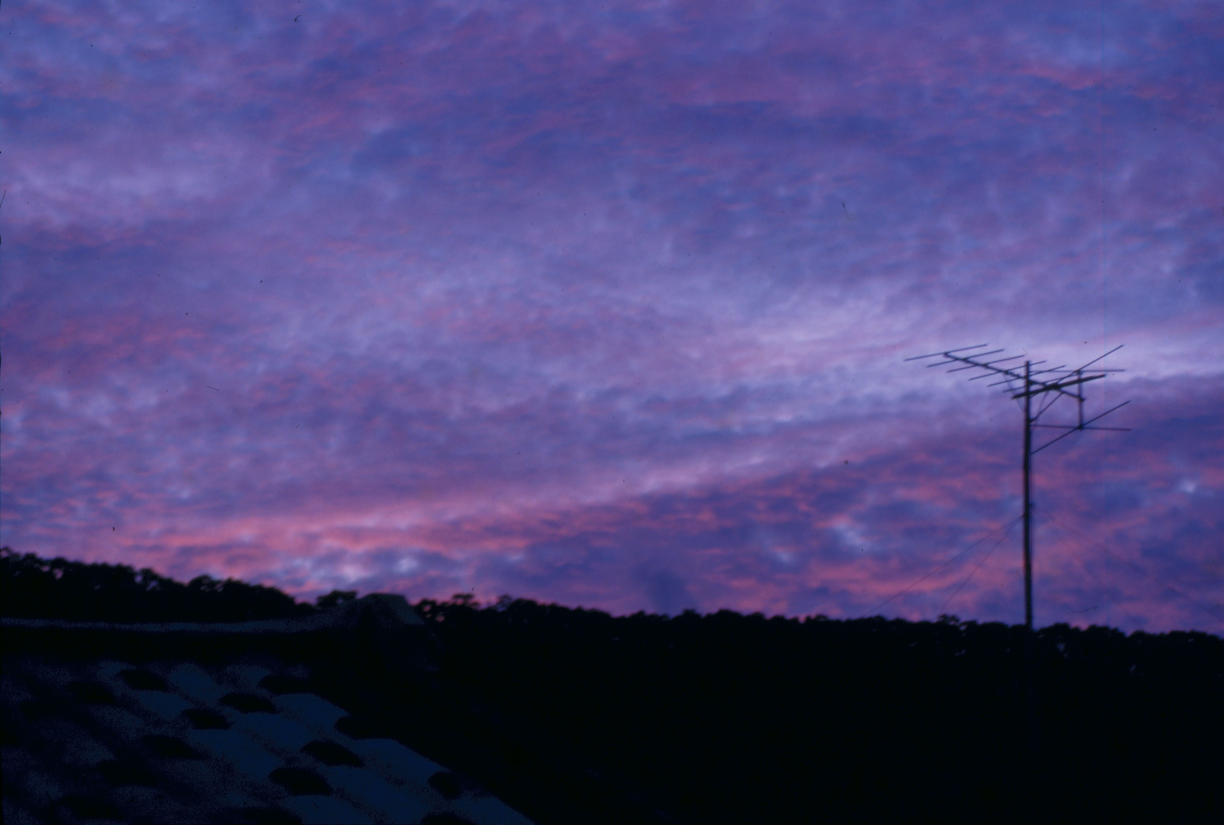 2:滿州鄉的黃昏,仰望天際,除了美麗的晚霞,還可見聳立的電視天線。