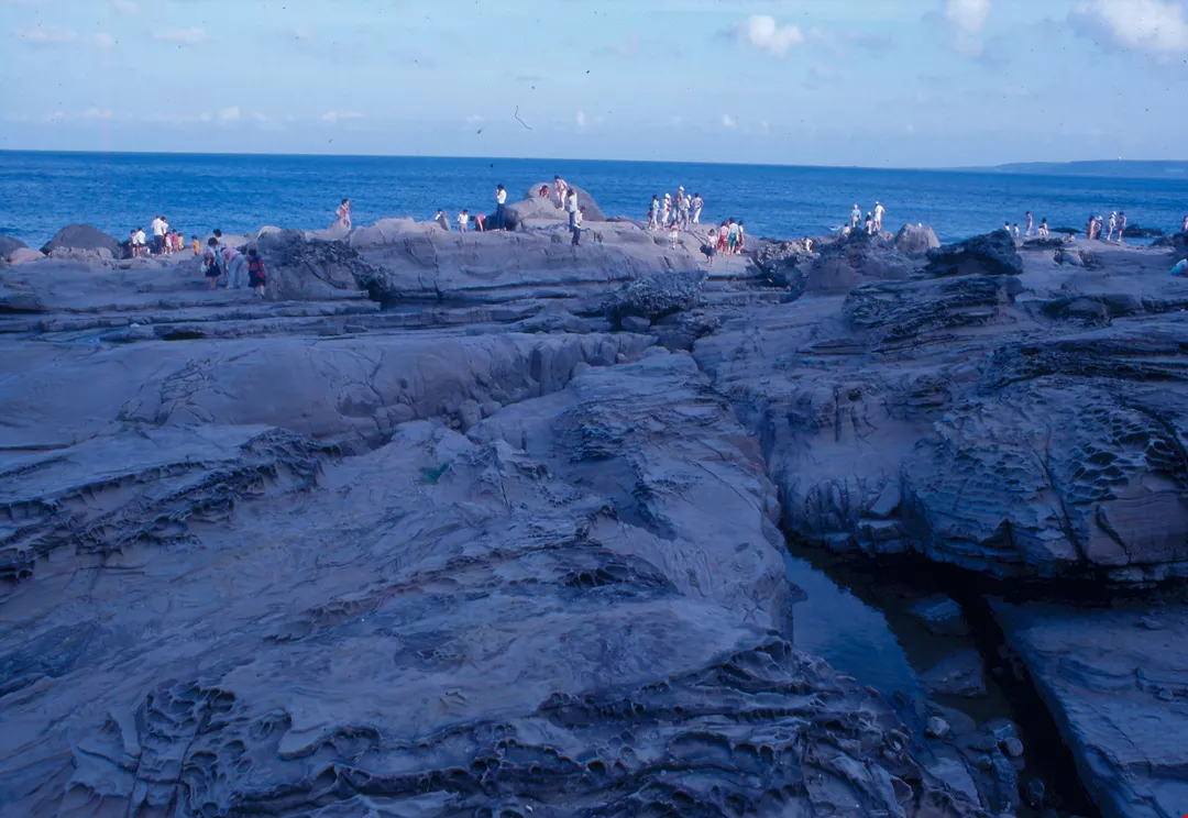 佳樂水海邊景緻。圖1.2.4:岸邊礁石經千古年來地殼變動、海水侵蝕與大自然風化等作用,呈現種種特異風貌。(艾瑟)