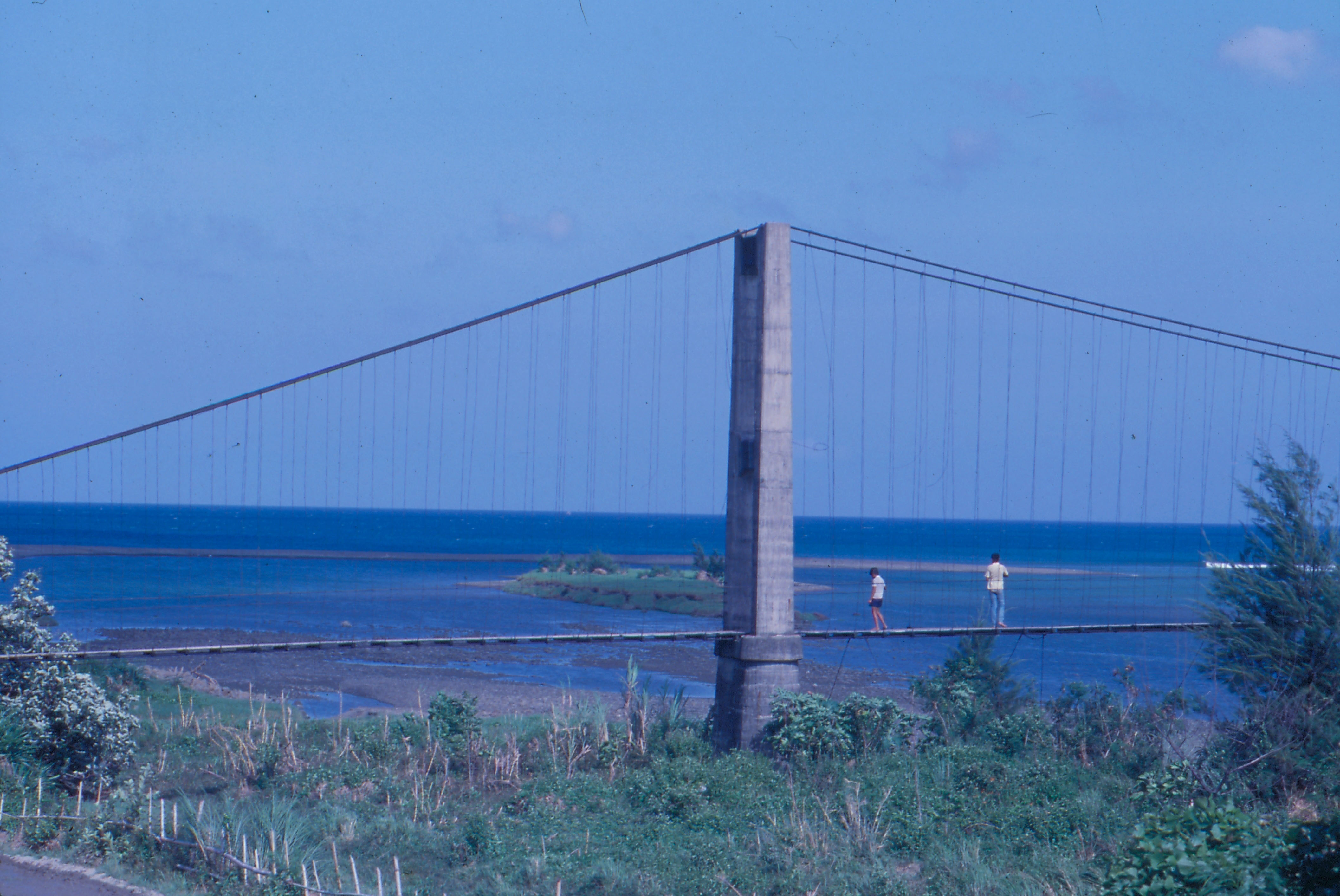 圖3:這座吊橋原為鵝鑾鼻至佳樂水必經途徑,現因新建有水泥大橋,已棄置不用,成為孩童的嬉戲場所。(艾瑟)