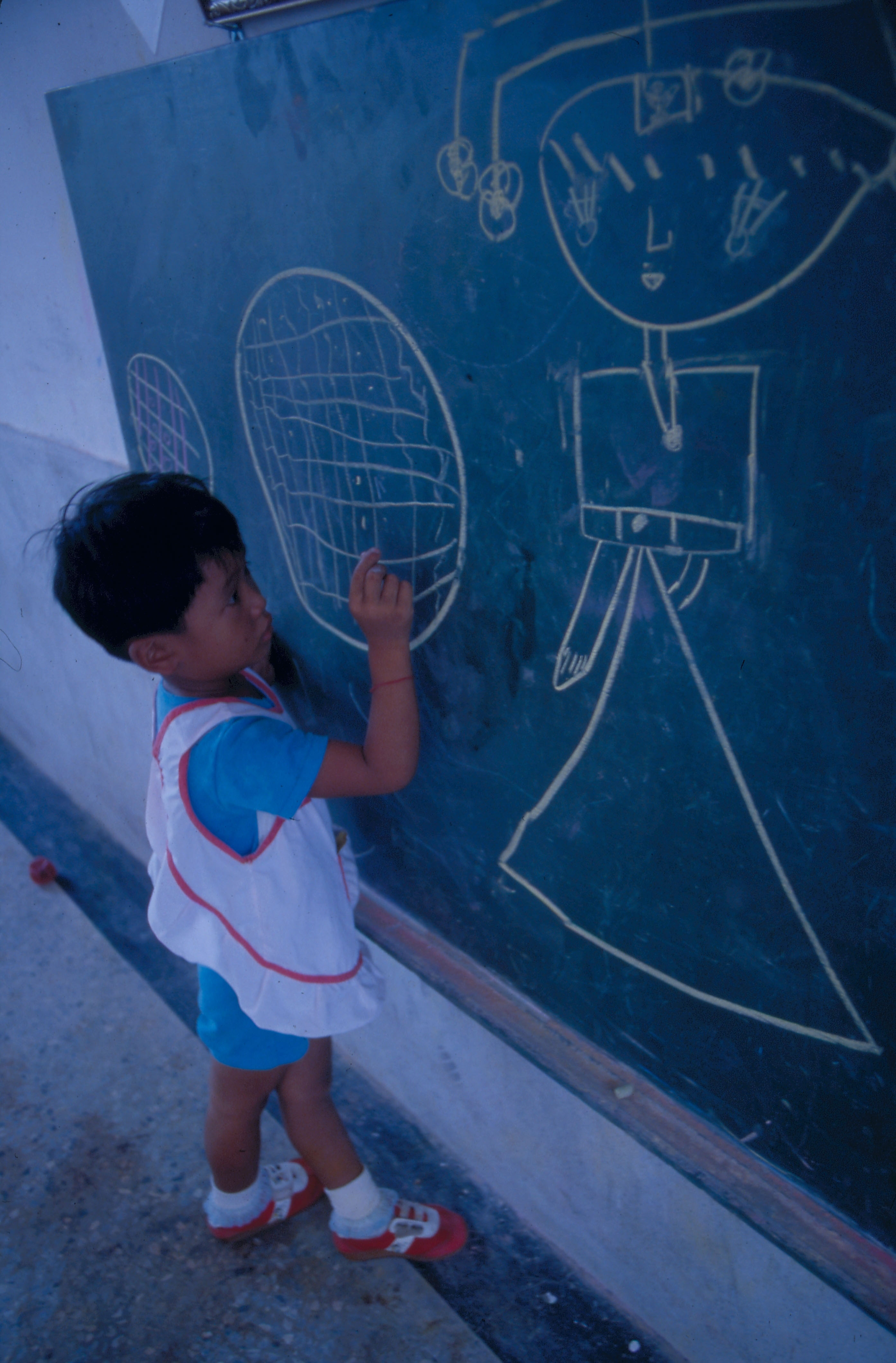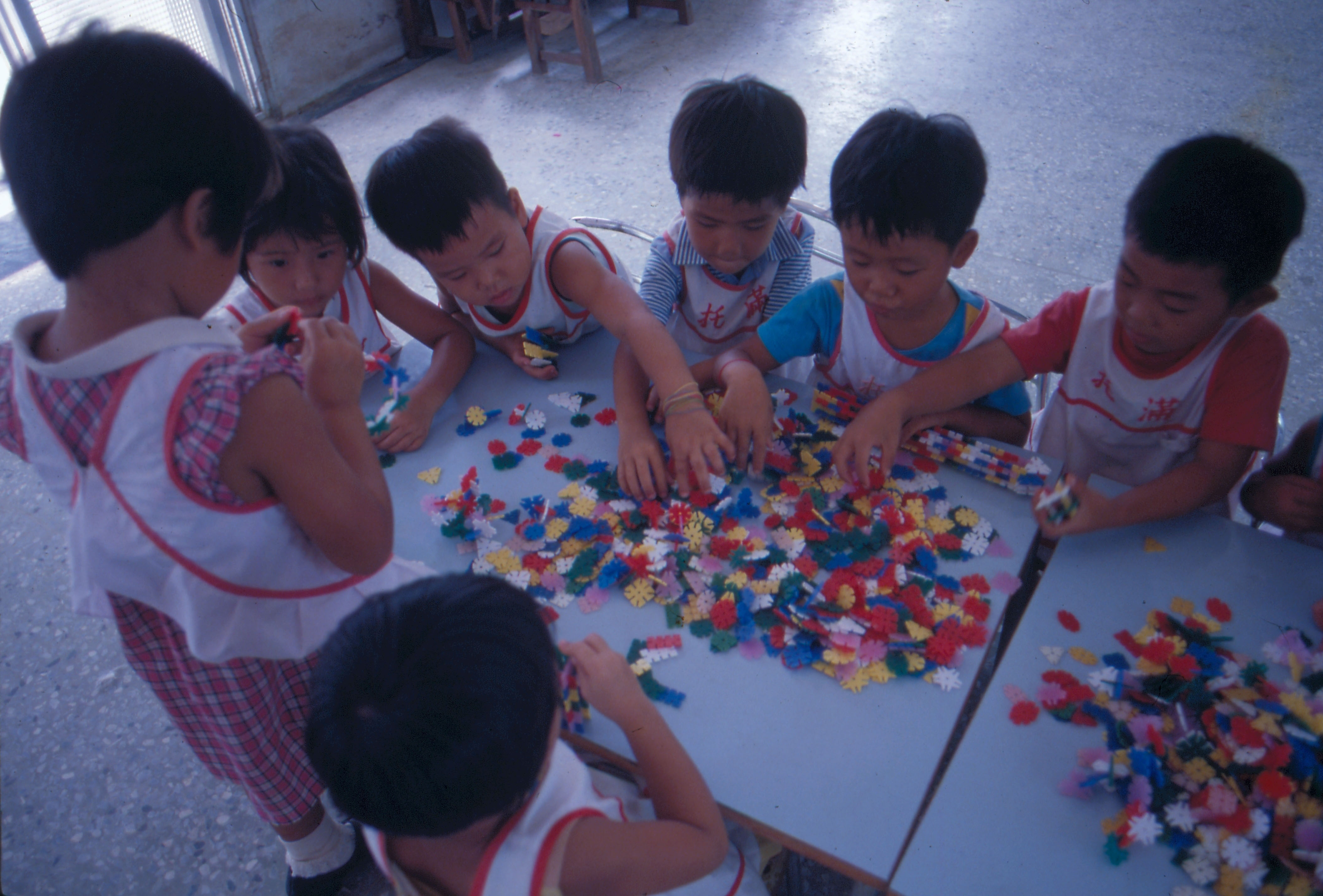 圖2.3.4:滿州托兒所小朋友上課的情形,他們在數數目、玩積木和自由畫圖。(艾瑟)