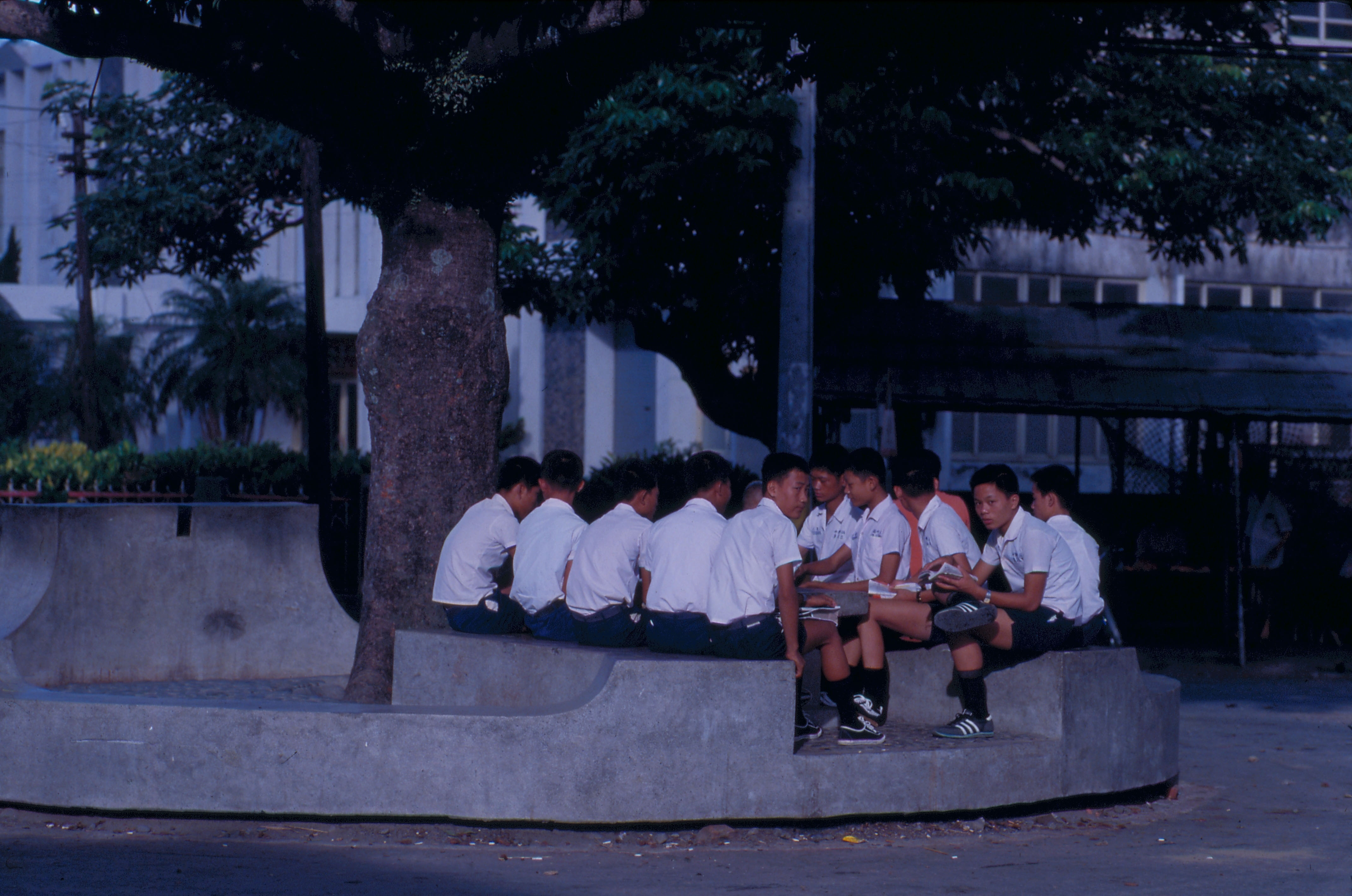 圖5:放學了,滿州國中學生坐在樹蔭下等候公車。(艾瑟)