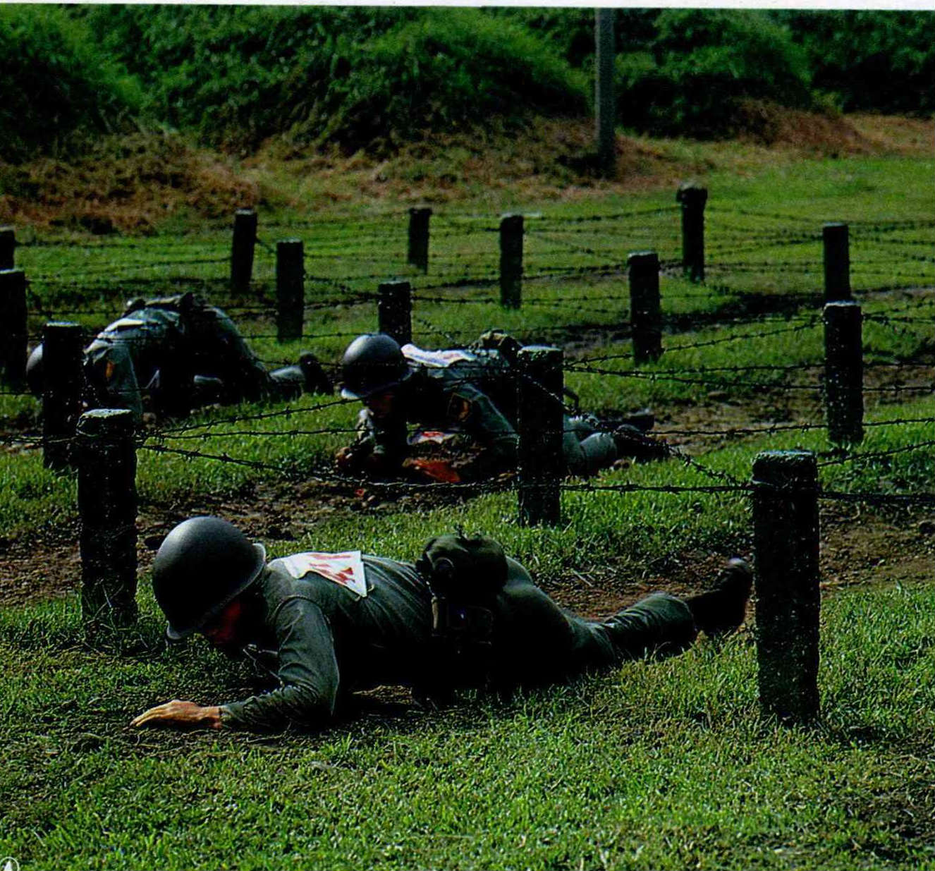 圖4:學生參加國軍運動大會,匍匐穿過低絆網。(楊永山/高稚偉/黃埔出版社)