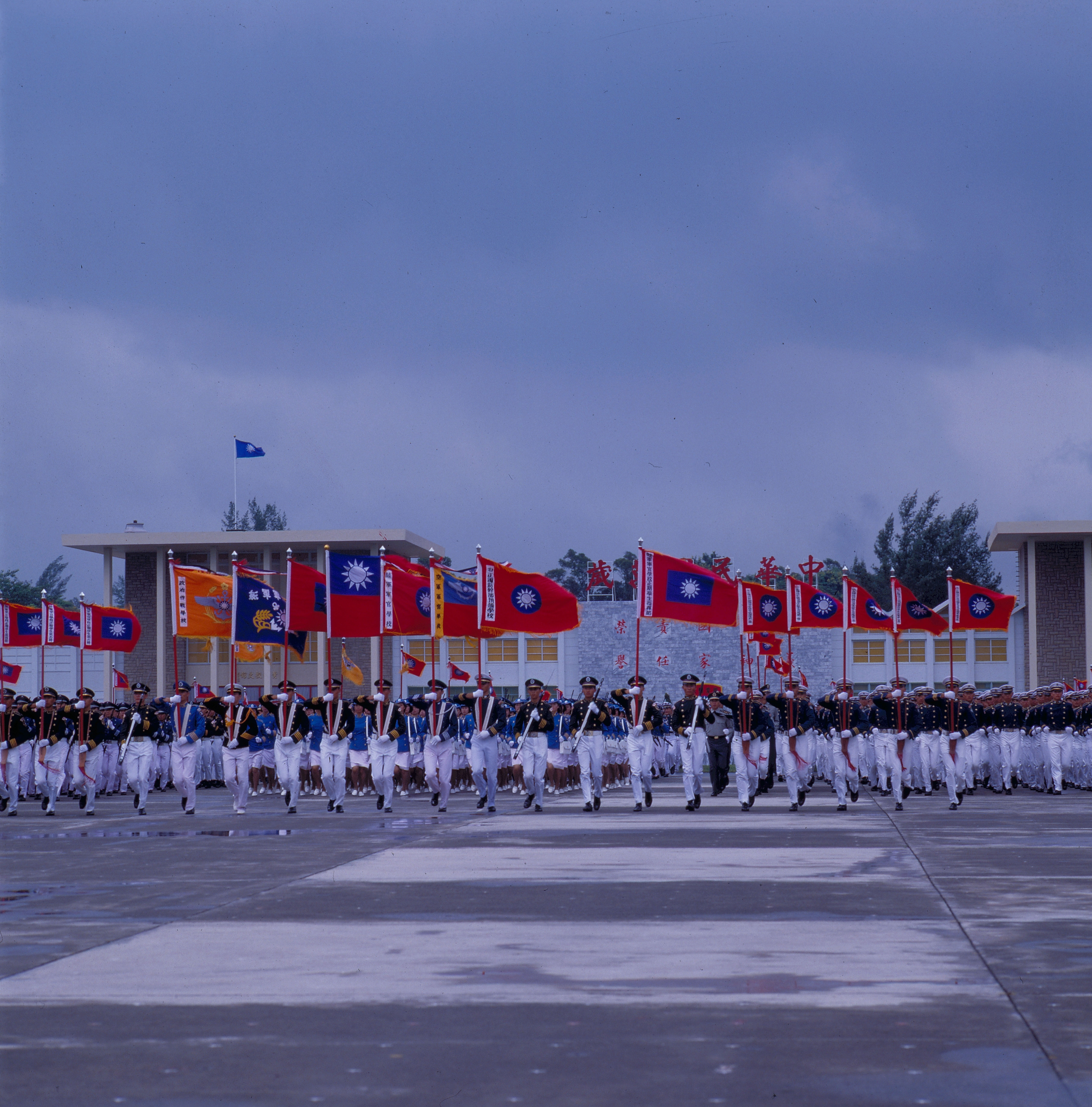 典禮中,並舉行軍容壯盛的閱兵儀式,學生隊伍以整齊劃一的步伐,精神抖擻地正步通過閱兵臺,向大閱官——參謀總長郝柏村上將,及各國使節、各界貴賓致敬。