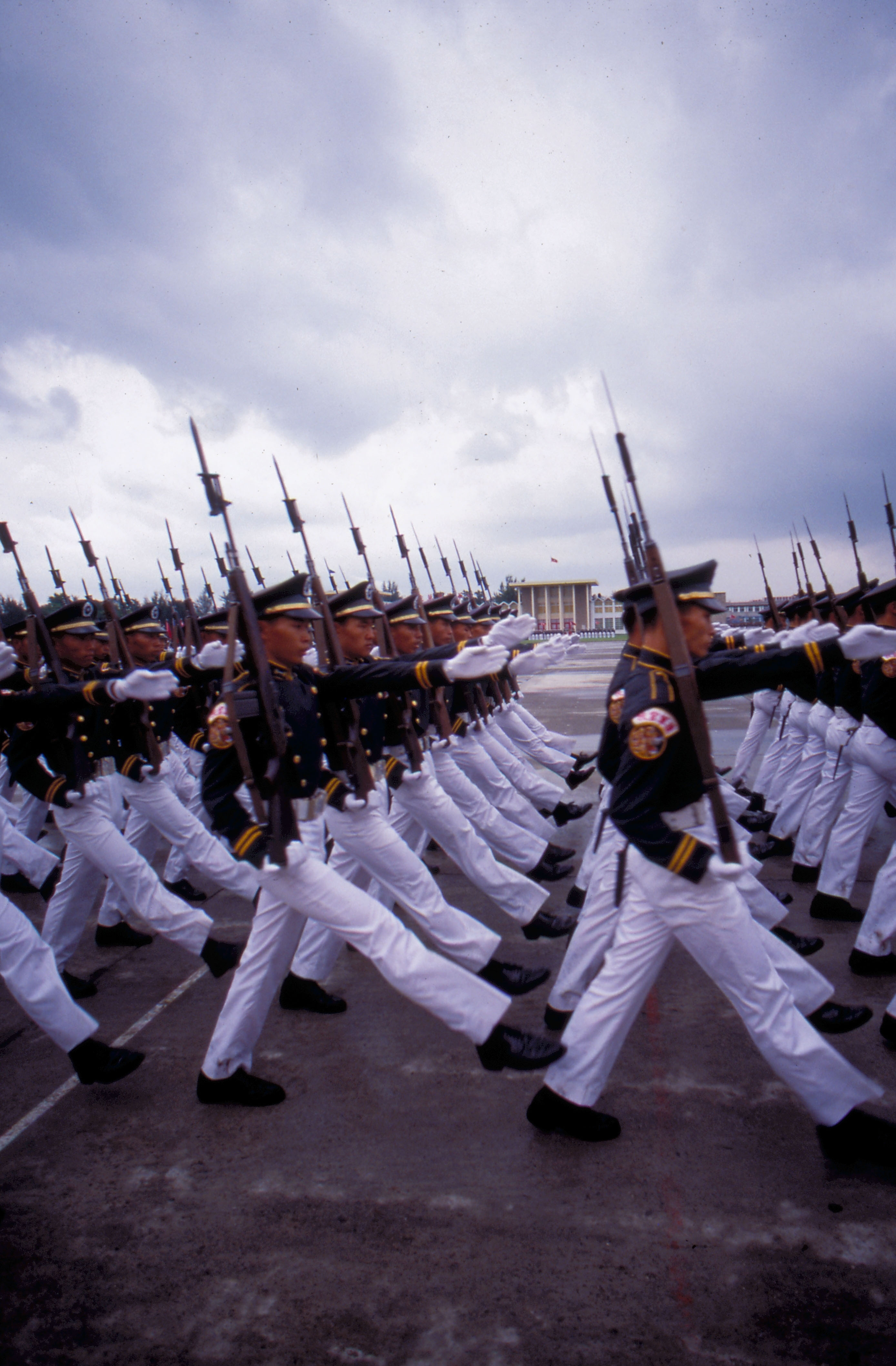 圖5.是學生正步通過閱兵台。(楊永山/高稚偉/黃埔出版社)