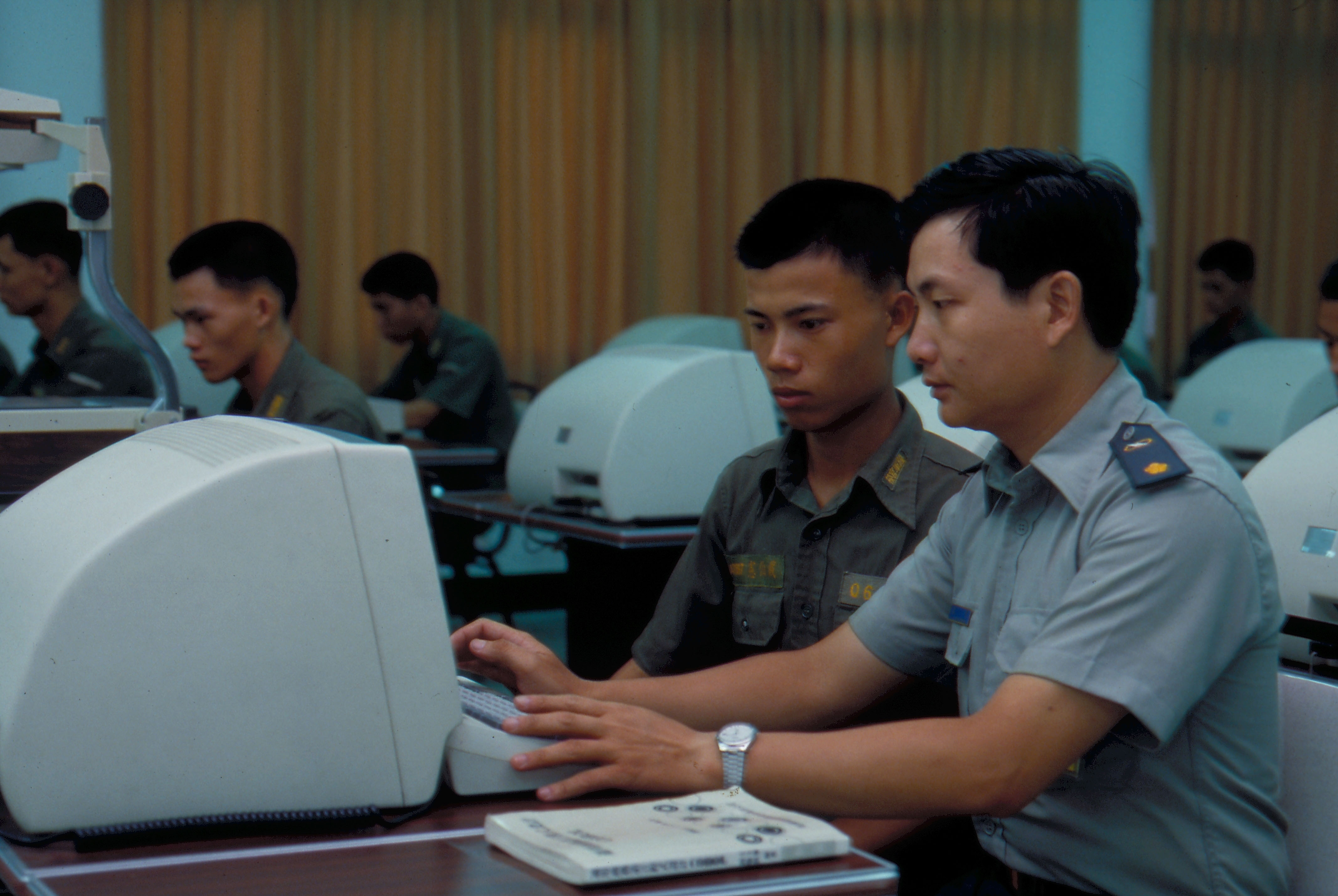圖2:陸官教學設施完備,圖為師生在資訊中心內操作電腦。(楊永山/高稚偉/黃埔出版社)