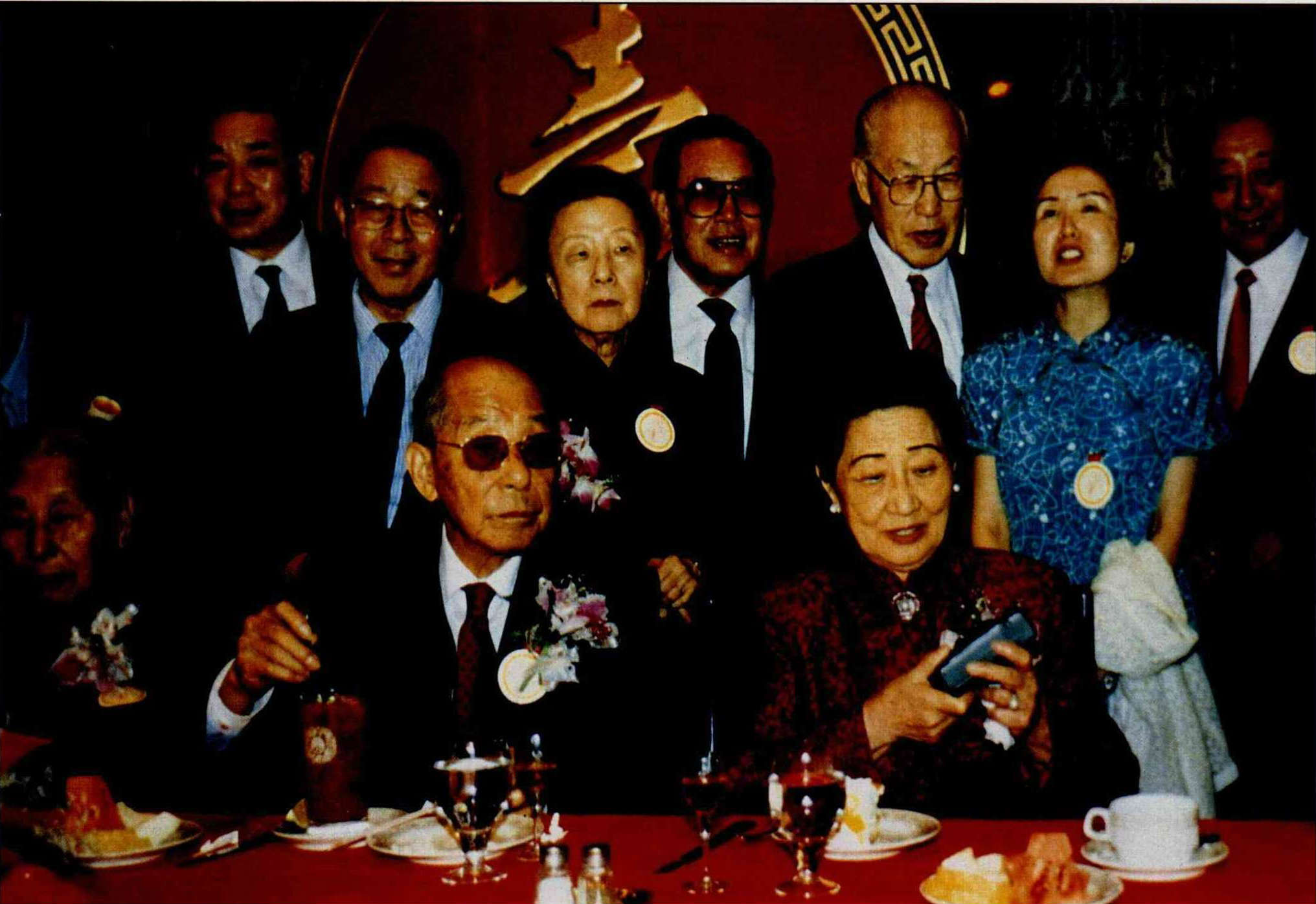 民國史上的關鍵人物之一、因西安事變遭軟禁達半世紀的張少帥學良和夫人趙四小姐,在二蔣總統俱走入歷史後,經老「部下」張群(左一,當時已一百零二歲)力邀為其作九十大壽而終於露面。東北失陷和西安事變是影響中國命運至鉅的兩大事件,多年來傳記文學對二者有將近百篇來自不同作者和各種角度的報導,豐盛的史料是否能讓少帥「留得清白在人間」?後排右起第二人是也為傳記貢獻一生的劉太太,雖然已不再年輕,仍可略見當年的傾城之姿。(劉紹唐提供)(劉紹唐提供)