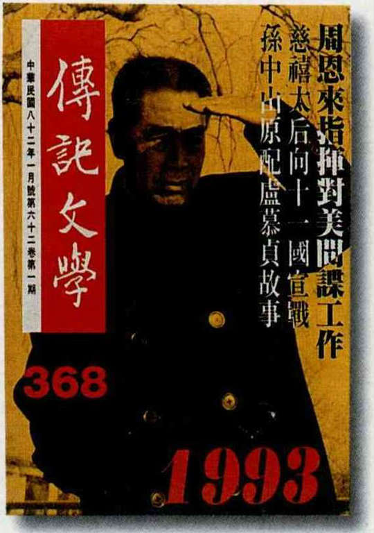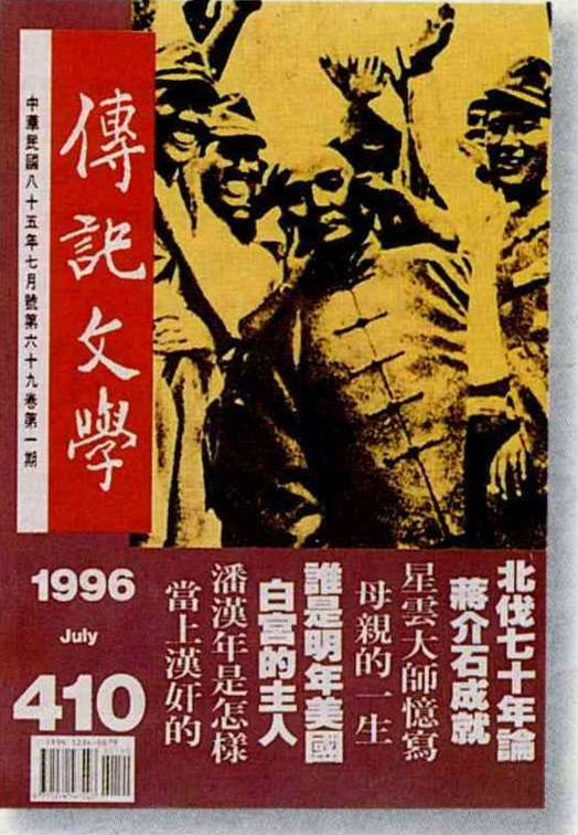 得獎時最新一期的傳記文學仍然很能配合時代脈動,直問「誰是白宮新主人?」執筆者則是第一代傳記作者陳香梅。封面圖片是民國二十六年日軍屠南京城時,興高采烈地搗毀國父孫中山先生遺像。(卜華志)