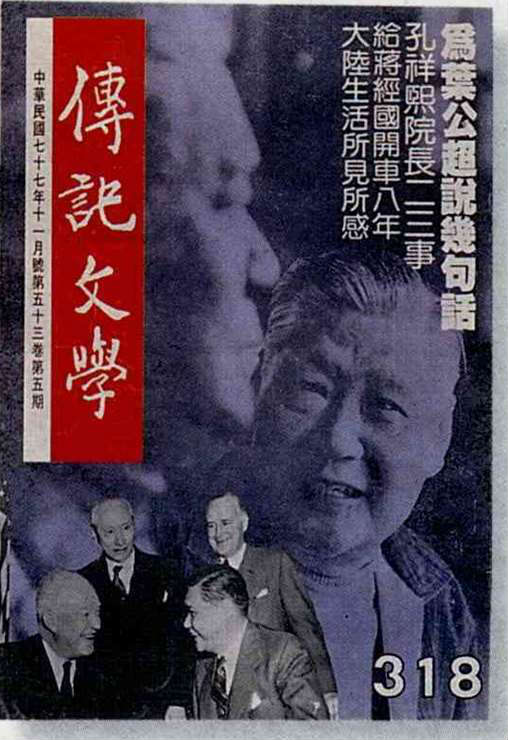 除了每月一本的雜誌,傳記文學還陸續出版了近四百種的叢書,是研究中國近代史的必備資料,但比資料略不同的是,大部份都很好看。(卜華志)