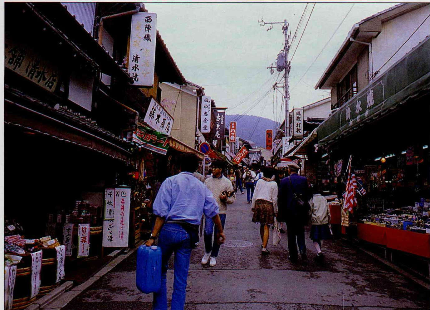 日本京都清水寺旁的老街上,賣著各式小吃、藝品,觀光客可以消磨一天。