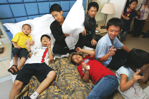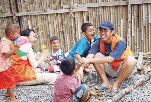 南亞海嘯後,學生響應伊甸基金會的「working holiday」活動,自費前往泰國蘭塔島擔任志工,服務當地漁民的孩子。(伊甸基金會提供)