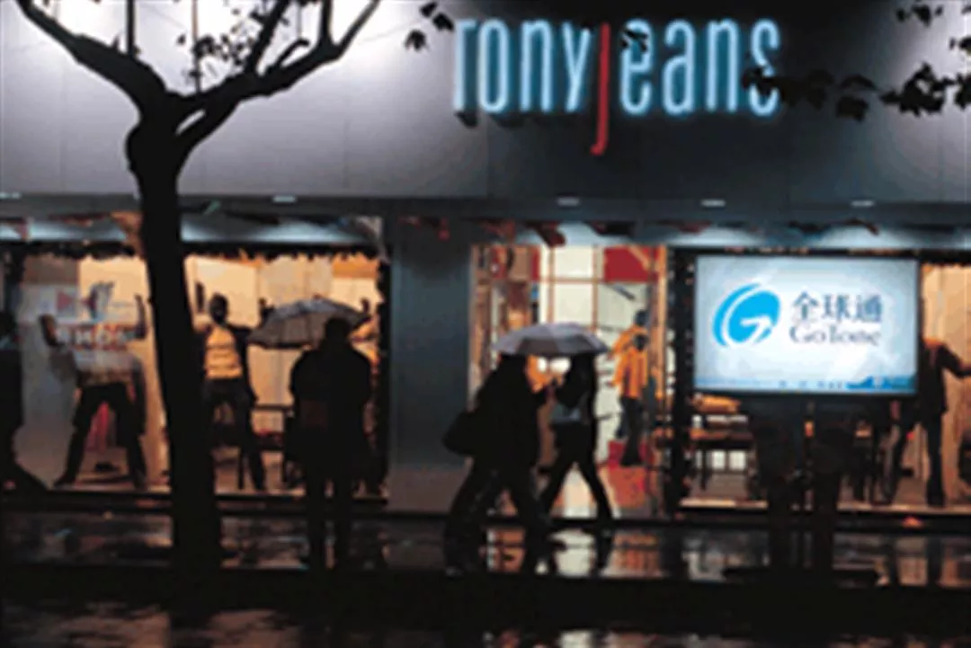 在上海熱鬧繁華的淮海路上,Tony Jeans活潑光鮮的店裝,與店內流洩而出的燈光、音樂,吸引著過路人的目光。