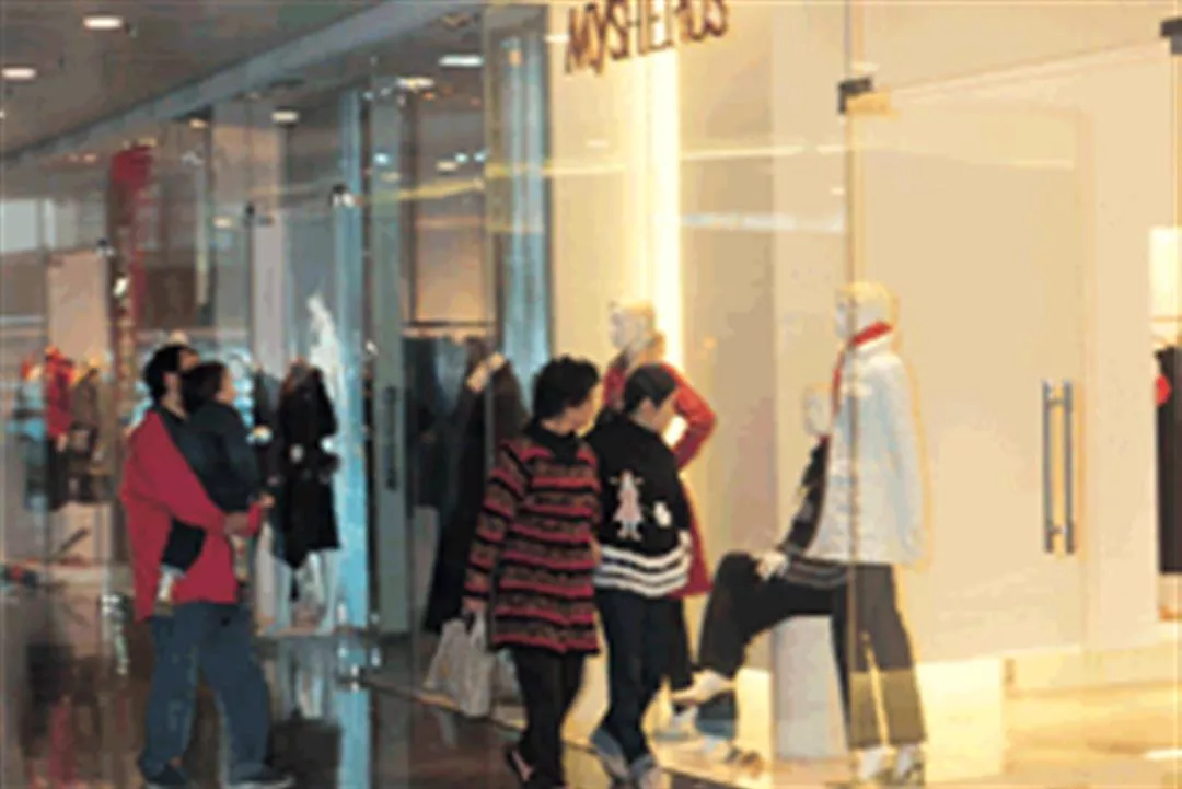 週六下午,蜜雪兒服飾位於浦東正大廣場三樓的賣場,人氣頗旺,許多年輕人趁著折扣期間,正忙著挑選新裝。