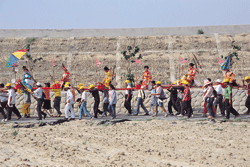 蜈蚣陣上孩童百態