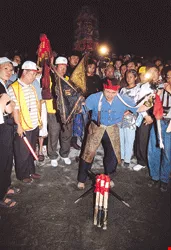 據了解,熱中參加廟會的人,為的就是想看各式傳統藝陣的演出。說是磁場吸引也好,或者情緒過度融入也罷,亢奮者還會因此起乩,輕微的則會不知不覺地流下淚來。也有人說,光只是聽到廟會敲鑼打鼓的聲音,整個人就感覺很興奮,這兒瞧、那邊看,東奔西跑,一點也不覺得累。