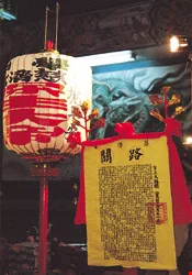 今年,適逢四年一次的上白礁「學甲香」慶典,一大早由鄰近鄉鎮──佳里幽冥殿延請來的范、謝兩位將軍已安穩地站在廟埕大門的兩旁,讓前來隨香的信眾可順道利用慶典在此收驚、辟邪。