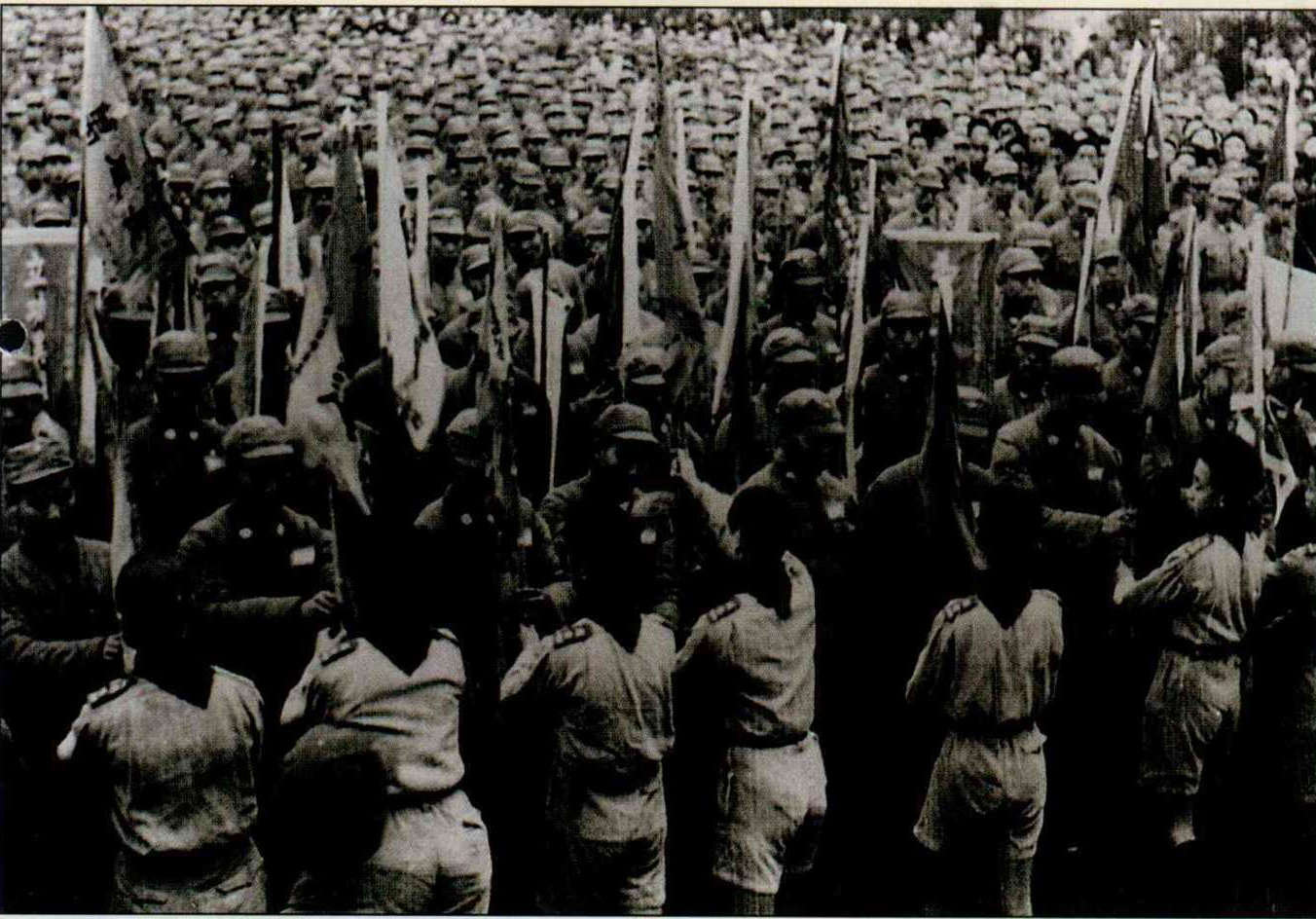 「九一八事變」之後,日本佔領了東北各省,並於一九三二年至上海發動「一二八事變」,隔年併吞熱河、進犯華北。總括日本自「九一八」之後所搶奪的中國土地,其面積約等於英、法、德、比、荷五國的總和。在日本的節節進逼下,一九三七年七月七日,「蘆溝橋事變」發生,中國不得不奮起抗戰。