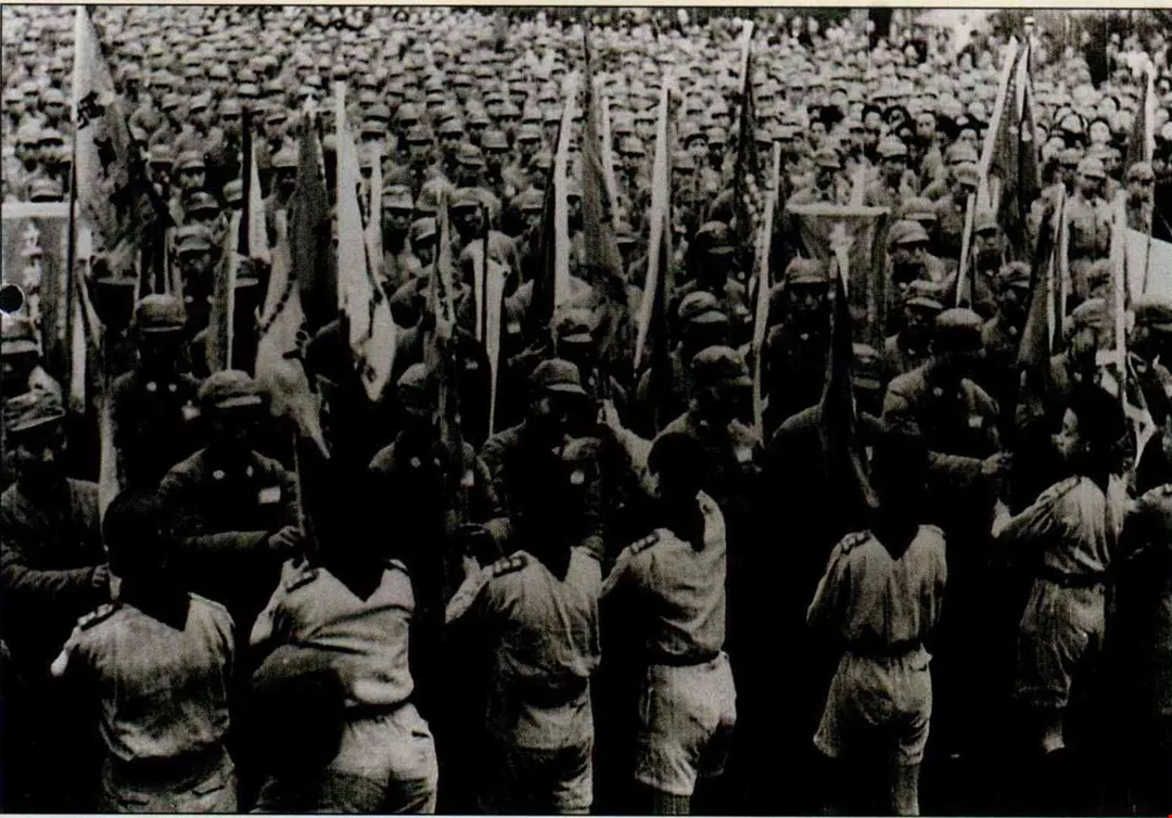 一九四五年八月,東北人民歡慶抗戰勝利。(取材自漢聲雜誌《目擊抗戰五十年》)(取材自漢聲雜誌《目擊抗戰五十年》)