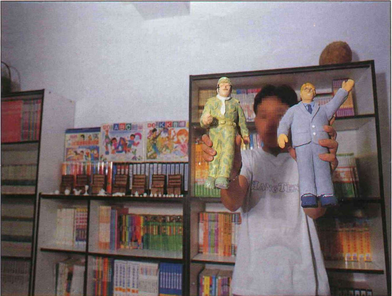 客人來了,趕快秀一下我的雕塑傑作,這些都是我利用課餘時間完成的哦!(薛繼光)