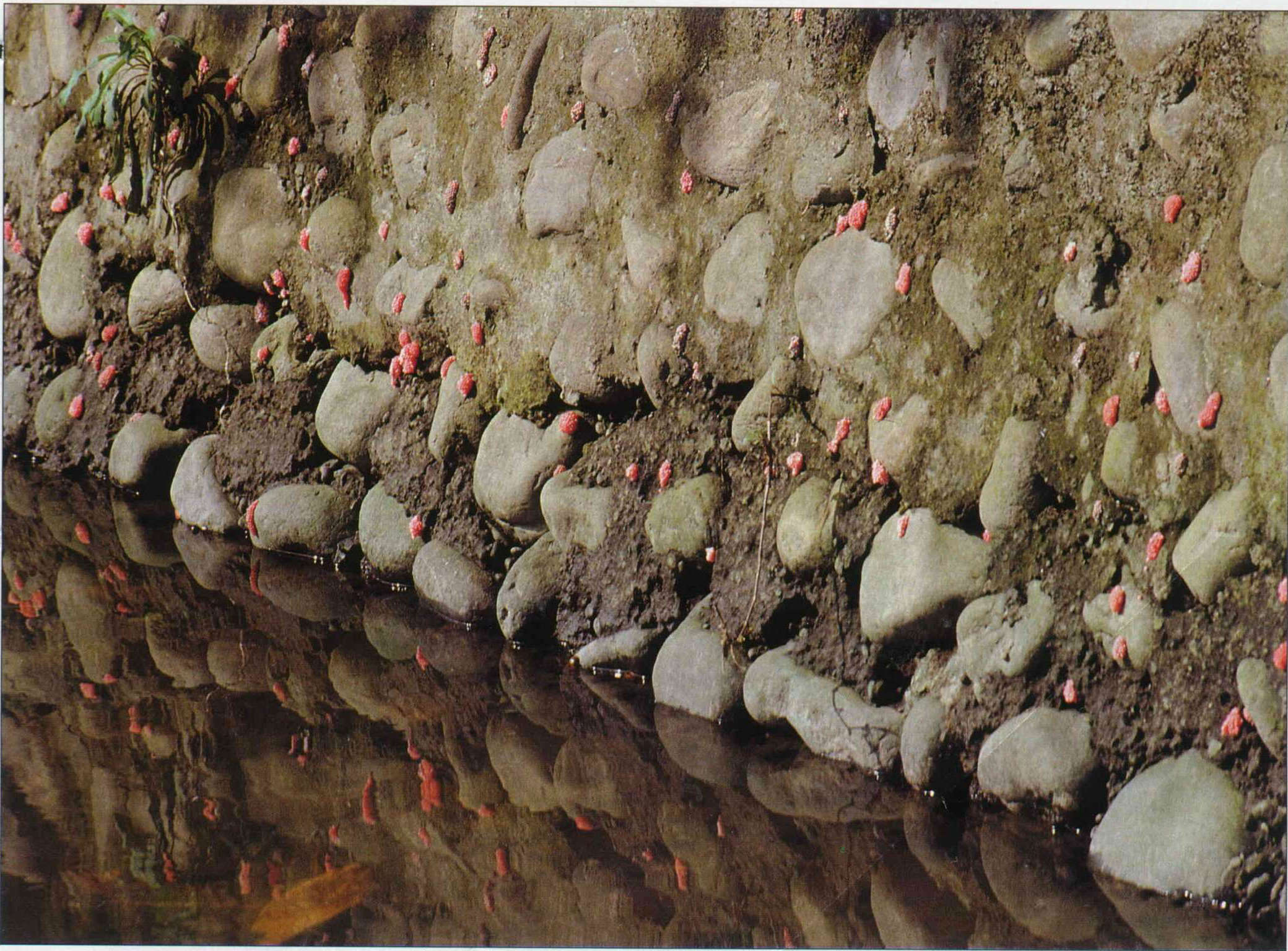 福壽螺是另一個數量緊追吳郭魚之後的外來水族。最初商人引進是為了推廣食用,可惜牠不對中國人口味,命運遠不及吳郭魚。慘遭「惡意遺棄」於荒郊野外之後,牠靠著旺盛的生命力,以農作物「裹腹」,卻因此入主寶島成功。如今地無分南北、時不分四季,只要有農田,均可見到牠粉紅色的卵,附著在離水面一尺的作物上。