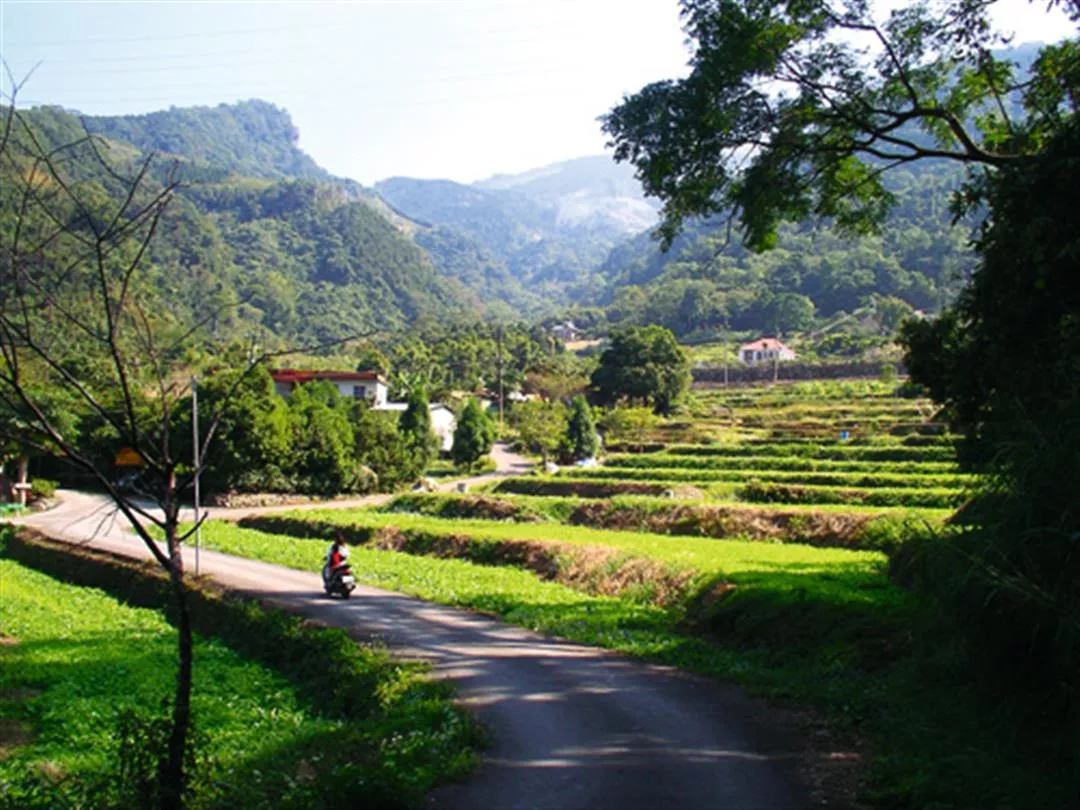這天下午,一行人拉拔到銅鑼和通霄交界的虎頭崁進行戶外實習課。從稜線鳥瞰通霄,幾個聚落散布在蓊鬱山丘間,稻田、果園景觀錯落,正像陳美汀形容的「鑲嵌地景」。