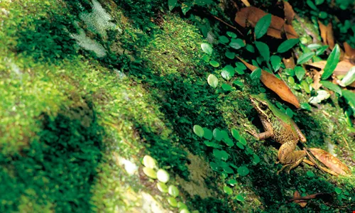 徐仁修出版《與大自然捉迷藏》,記錄大自然中生物與環境融合、互動的智慧。圖中的「斯文豪氏赤蛙」體色會隨著周遭環境而改變。