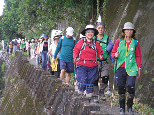 徐仁修和前台大數學系教授黃武雄、華視總經理李遠(小野)等人,發起「千里步道」活動。圖為宜蘭社區大學帶領民眾到石空古道健行。