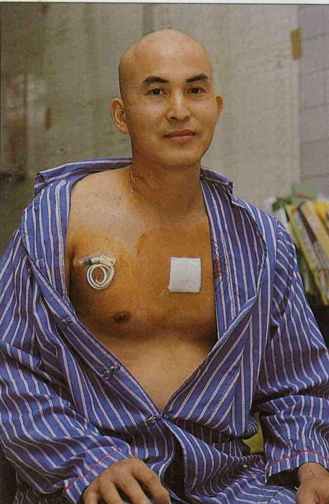 為了方便注射針劑,接受骨髓移植的病患必須先在右胸部位插入導管,屆時骨髓將由此導管輸入。(薛繼光攝)