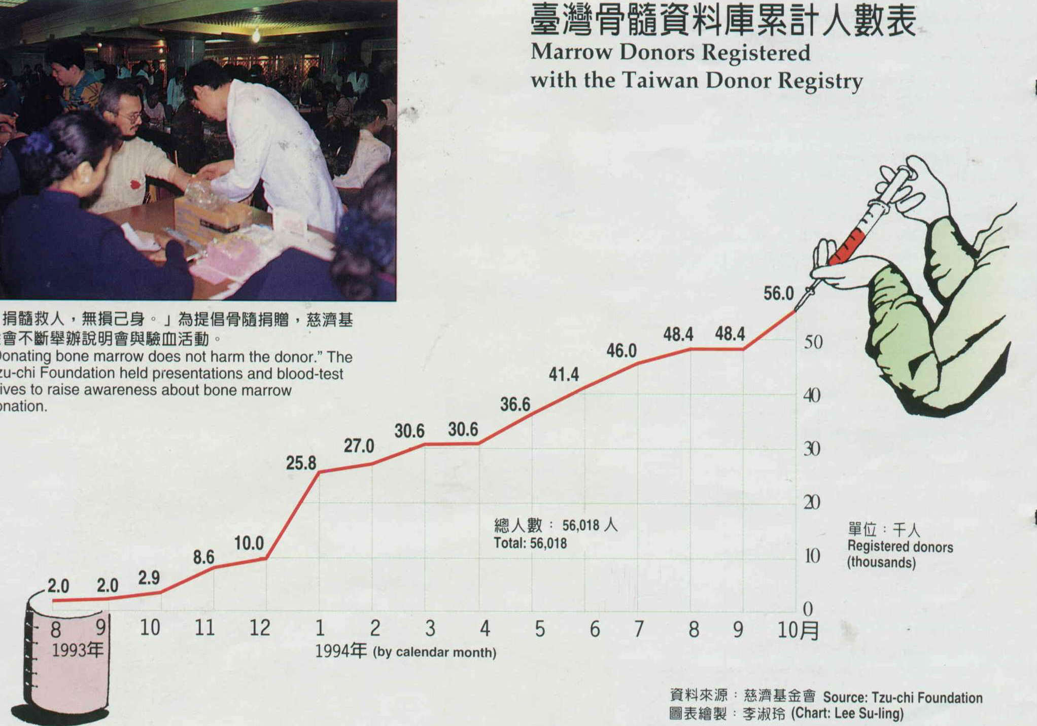 台灣骨髓資料庫累計人數表 資料來源:慈善基金會 圖表繪製:李淑玲。(慈濟基金會提供)