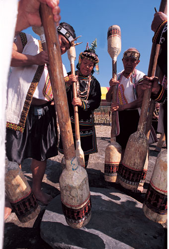 布農族人用敲擊石板的杵樂、八部合音以及舞蹈向祖靈祈福。