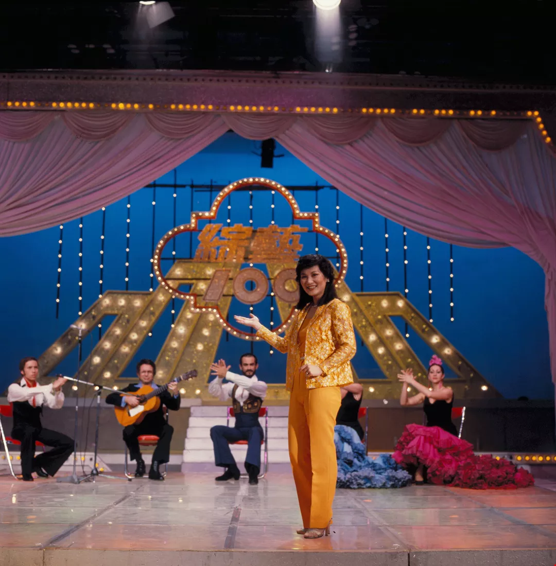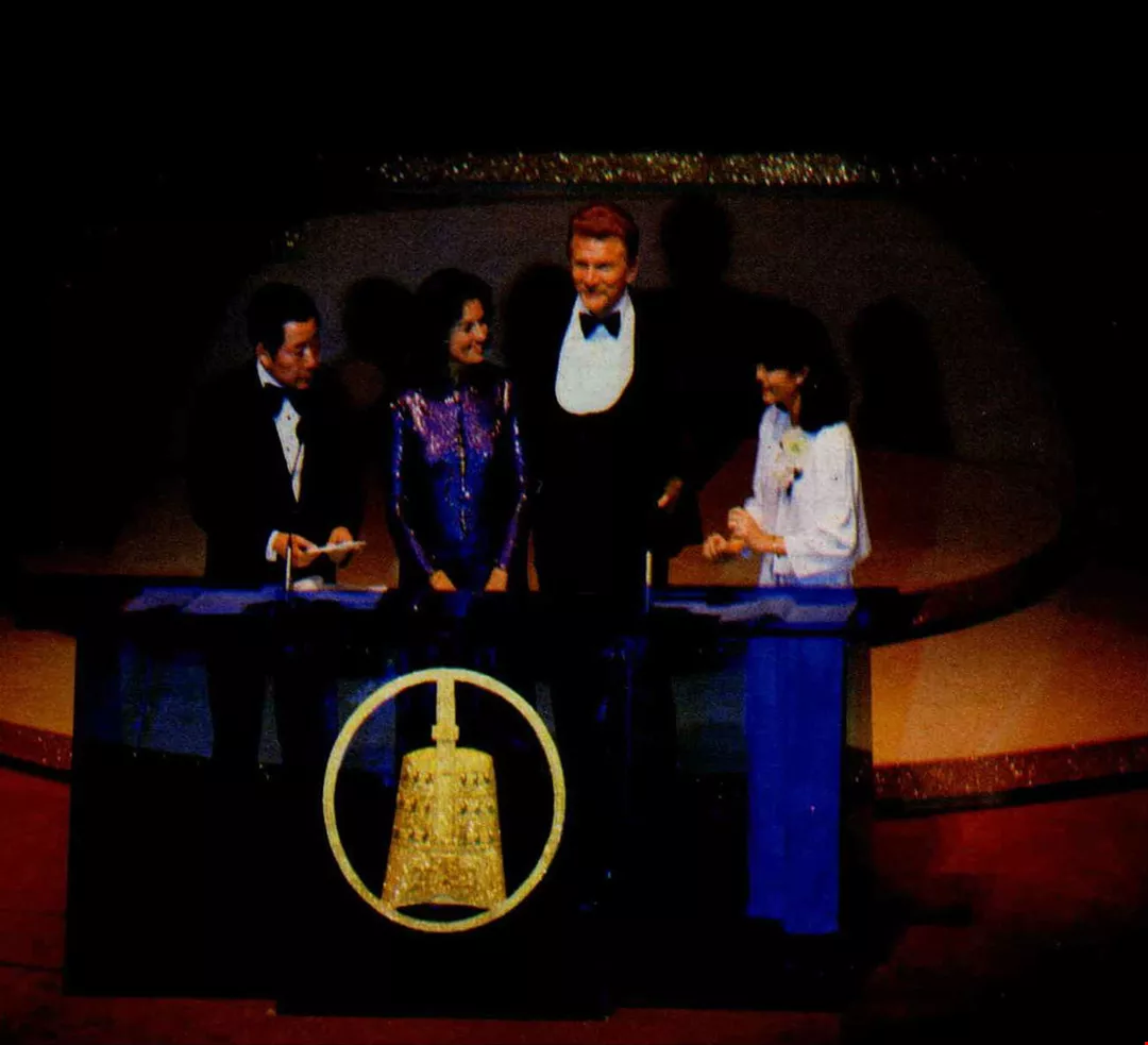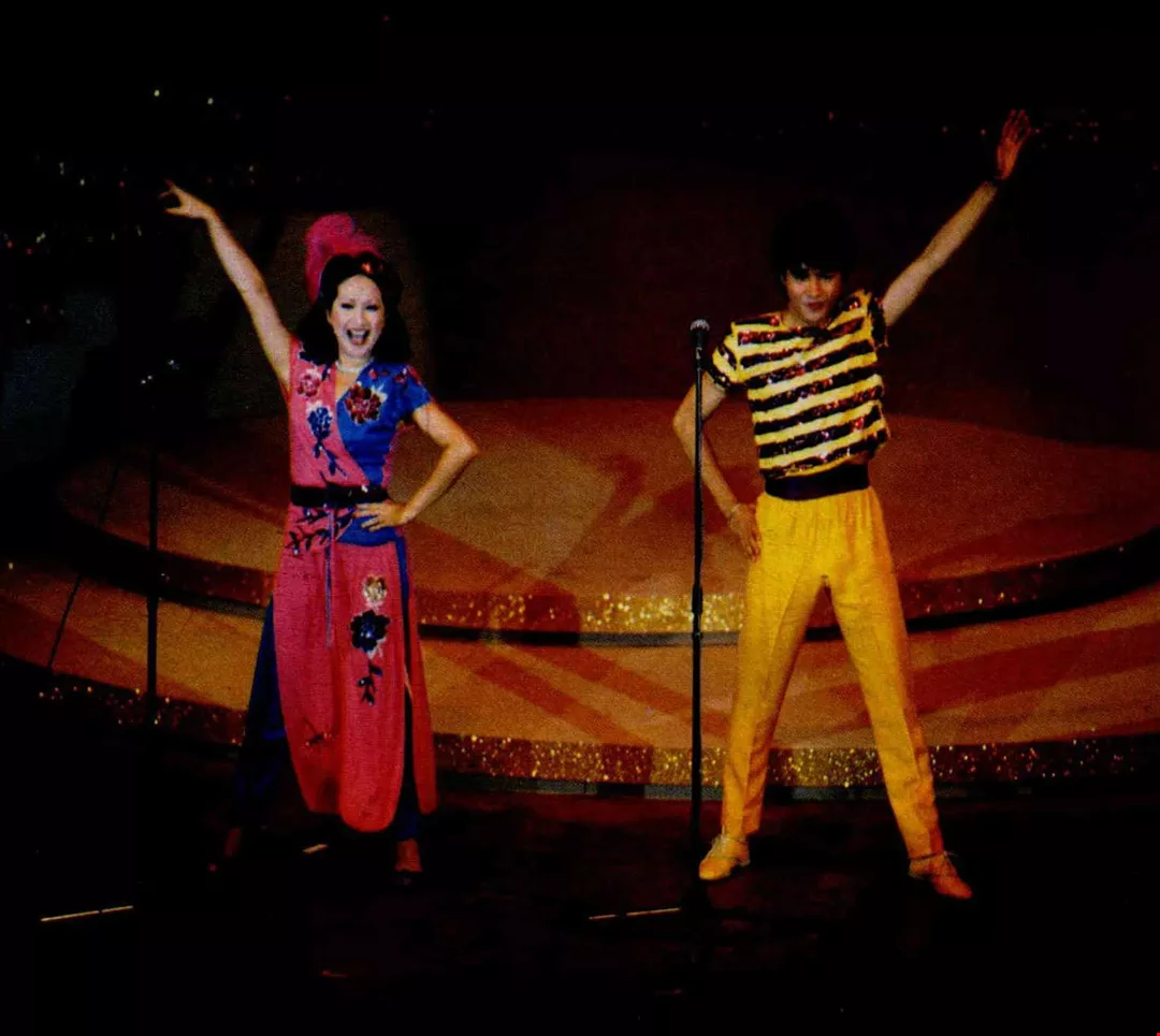 香港麗的電視台紅星薛家燕及張國榮在頒獎典禮中載歌載舞。